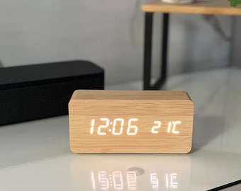 REACHER Réveil à grain de bois naturel, 26 sons de sommeil inspirés de Son mouvement silencieux apporte un espace super paisible pour dormir et travailler, vous permettant de vous immerger pleinement dans vos tâches ou de profiter d'un sommeil réparateur. Reveil Analogique Réveil Analogique, 10,2 Cm, Super Silencieux, Sans Tic-tac, Petite Horloge Avec Veilleuse, Fonctionne à Piles, Design Simple, Décoration Noire De Style Ancien, Pour Chambre à Coucher, Chevet, Bureau Reveil Bois Silencieux sans tic-tac : l'aiguille des secondes fonctionne silencieusement, sans bruit de tic-tac gênant. Aicharynic Réveil Analogique Sans Tic-tac - Fonctionne Avec Piles - Avec Fonction Snooze Et. 4.8 5. 4.8/5. Consulter 916 avis Type : Réveil analogique · Fonctionnalité : Silencieux sans tic-tac · Éclairage : Veilleuse douce intégrée · Dimensions : Compact, idéal pour table de chevet... Choix de cadeau idéal : avec son mélange de style rétro et de fonction pratique, cette horloge est un cadeau merveilleux et attentionné pour les étudiants, les amis, la famille ou les collègues. Il suffit d'appuyer sur le bouton supérieur à l'arrière pour activer la lumière LED douce. Il est idéal pour les occasions comme les pendaisons de crémaillère, les anniversaires, Noël, le Nouvel An, Thanksgiving, etc. Matériau en bois massif naturel : ce joli réveil principalement fabriqué à partir de bois naturel massif, cette horloge minimaliste allie fonctionnalité et charme esthétique, ce qui en fait le complément parfait à votre table de chevet, bureau ou bureau., Durable et sain. Le réglage de l'heure et de l'alarme est sans effort, grâce à des boutons rotatifs intuitifs qui offrent un contrôle précis. Oxmidud Réveil analogique en bois naturel de 10,2 cm avec veilleuse douce – Fonctionnement à piles, sans tic-tac, silencieux, horloge de bureau et de chevet pour chambre à coucher, salon, décoration de bureau à domicile