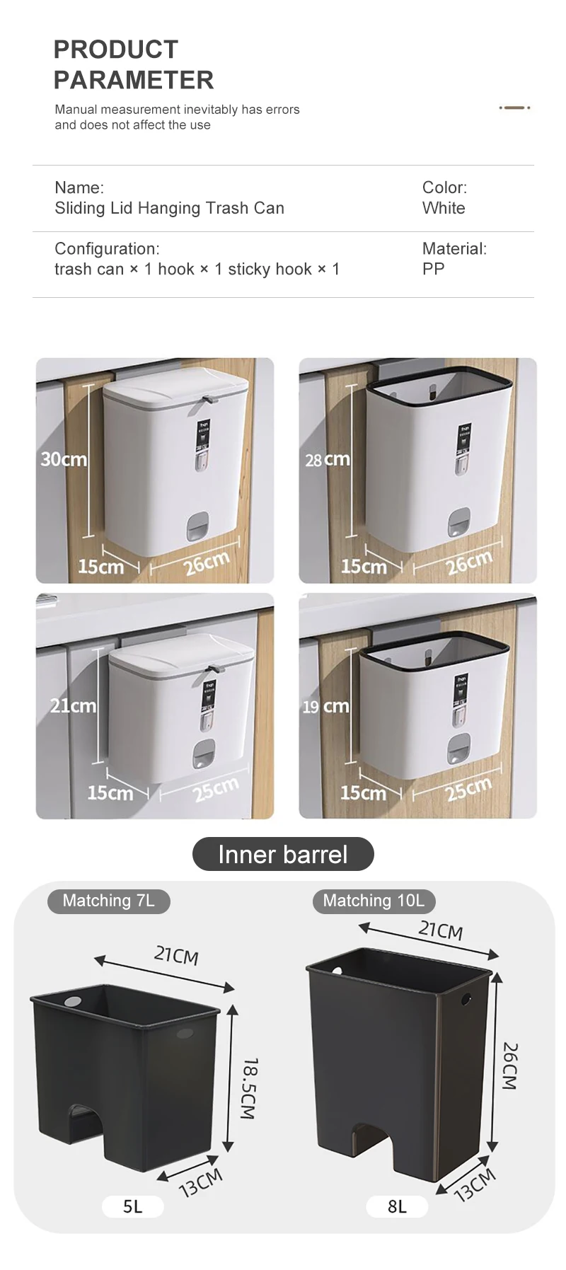 La poubelle murale sous l'évier garde propre et repousse mieux les odeurs que les autres poubelles sans couvercle. Bac Recyclage Suspendu Bncxdc Poubelle De Cuisine Suspendue 9,5L - Composteur Avec Couvercle - Pour Porte D'Armoire - Blanc Poubelle Design Blanc Cuisine ou la poser sur le sol comme une poubelle ordinaire. Poubelle Sous évier Anti-odeurs Poubelle Suspendue Pour Cuisine, 10 L, Support Mural Poubelle Pliante Camping-car Le bac à compost fonctionne parfaitement avec les sacs de courses réutilisables, adapté pour la cuisine, la salle de bain, le camping-car, le linge, etc. Caractéristiques de la poubelle bio de cuisine : Couleur : blanc. Poubelle Suspendue pour Porte d'armoire de Cuisine,Poubelle Mince 2,6... Design coulissant et rabattable : cette poubelle avec couvercle est prévue pour deux possibilités d'élimination simples : une ouverture du couvercle coulissant et une ouverture rabattable avec mécanisme coulissant facile à utiliser pour une utilisation rapide d'une seule main pour une élimination propre des déchets. La surface intérieure lisse est facile à nettoyer. Poubelle De Cuisine Murale, Poubelle Suspendue À La Porte, Conception À... Matériau de qualité supérieure résistant aux odeurs : notre poubelle à suspendre est fabriquée en matériau composite PP + TPE épais, qui ne laisse pas de taches et d'odeurs persistantes, même après l'élimination des déchets humides. Matériau : PP + TPE Dimensions de la poubelle dépliée : 28 x 29,5 x 16,5 cm. Nombreuses utilisations : vous pouvez facilement accrocher la poubelle avec couvercle à la porte de l'armoire ou la coller au mur de la cuisine, de la salle de bain, des toilettes, etc. 1 crochet de porte d'armoire (pour les portes d'armoire d'une épaisseur inférieure à 2,5 cm). La poubelle de camping suspendue est pliable et facile à transporter, elle est donc également très adaptée pour vous dans le camping, le camping-car, la caravane, l'extérieur, etc