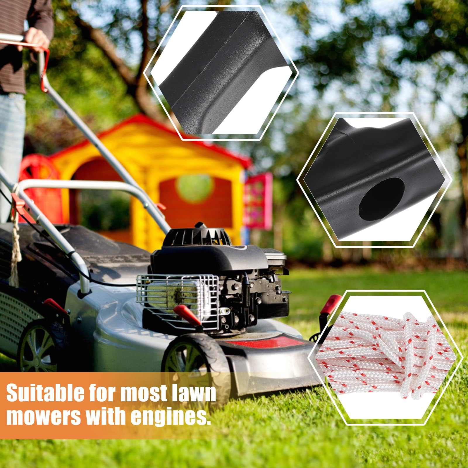 La corde de traction est fabriquée en matériau de haute qualité, ce qui garantit une longue durée de vie et résiste à l'usure et aux frottements. La corde a une surface lisse pour rendre le processus de traction sans frottement. Avec son mécanisme de traction fiable, il permet une mise en service rapide et facile des outils., 5., Merci d'avoir choisi notre palan à câble. Que vous utilisiez une tondeuse à gazon, une tronçonneuse, une tondeuse ou une tondeuse à brosse, ce câble de démarrage s'adapte parfaitement et vous aidera à démarrer vos machines sans problème. Lot de 2 poignées de démarrage de moteur à essence - Poignées de En outre, des accessoires de rechange et des pièces de rechange sont inclus pour les tondeuses à gazon, les tronçonneuses, les coupe-bordures et les coupe-brosses., 2., Matériau du produit : la corde du palan est fabriquée en matériau résistant de qualité supérieure. Avec une longueur de 10 mètres, il offre suffisamment de distance de traction pour une utilisation fiable et puissante. Corde de démarrage pour tondeuse à gazon, 10 m de diamètre 4 mm et 4 poignées de démarrage, convient pour tondeuses à gazon, tronçonneuses, coupe-bordures... Notre équipe de service client se fera un plaisir de vous aider à résoudre toutes les questions et problèmes. Ce palan de qualité supérieure est une pièce de rechange indispensable pour divers outils de jardin et de tronçonneuse. Il est principalement utilisé pour démarrer ces machines. Cable De Démarrage Pour Tondeuse JTMKYO 1 Jeu De 10 M De Câble De Démarrage à Recul, 3 Poignées De Démarrage Noires, Corde De Rechange De 3 Mm, Câble De Tondeuse à Gazon, Accessoires De Câble, Convient Accessoire Tondeuse à Gazon Il inclut 3 poignées de démarrage en plastique solide et une corde nylon de 10m de long (diamètre 3.5mm). Compatible avec la plupart des tondeuses... Nous sommes fiers de vous offrir un produit de qualité supérieure.