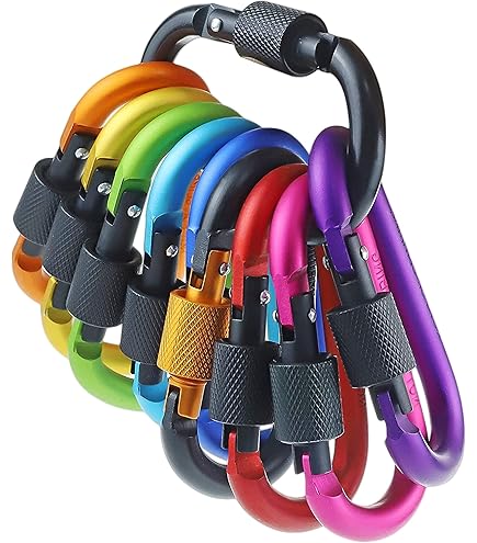 10Pcs Mousqueton de Fixation en Alliage d'Aluminium en Forme D Camping Randonnée Mousqueton Lot De 10 Mousquetons Escalade D-Clé Colorés En Aluminium Ultra-Légers Charge 15 Kg Léger 8x4 Cm 2 grands mousquetons escalade 6 cm aluminium 【Facile à utiliser】 Le mousqueton est conçu avec un capuchon à vis, qui peut être ouvert et fermé plus rapidement, en tournant la vis, vous pouvez facilement verrouiller ce mousqueton, puis le tourner dans le sens opposé et l'ouvrir à nouveau pour déverrouiller. Gvolatee 10 pièce ousquetons Escalade D-clé coloré Aluiniu... 【Largement utilisé】Le jeu de mousquetons est parfait pour un usage quotidien et peut être utilisé comme porte-clés, pour accrocher des bouteilles d'eau ou des lampes de poche sur des sacs à dos ou des bagages, parfait pour le camping, les voyages, la randonnée et la pêche. Opération à une main