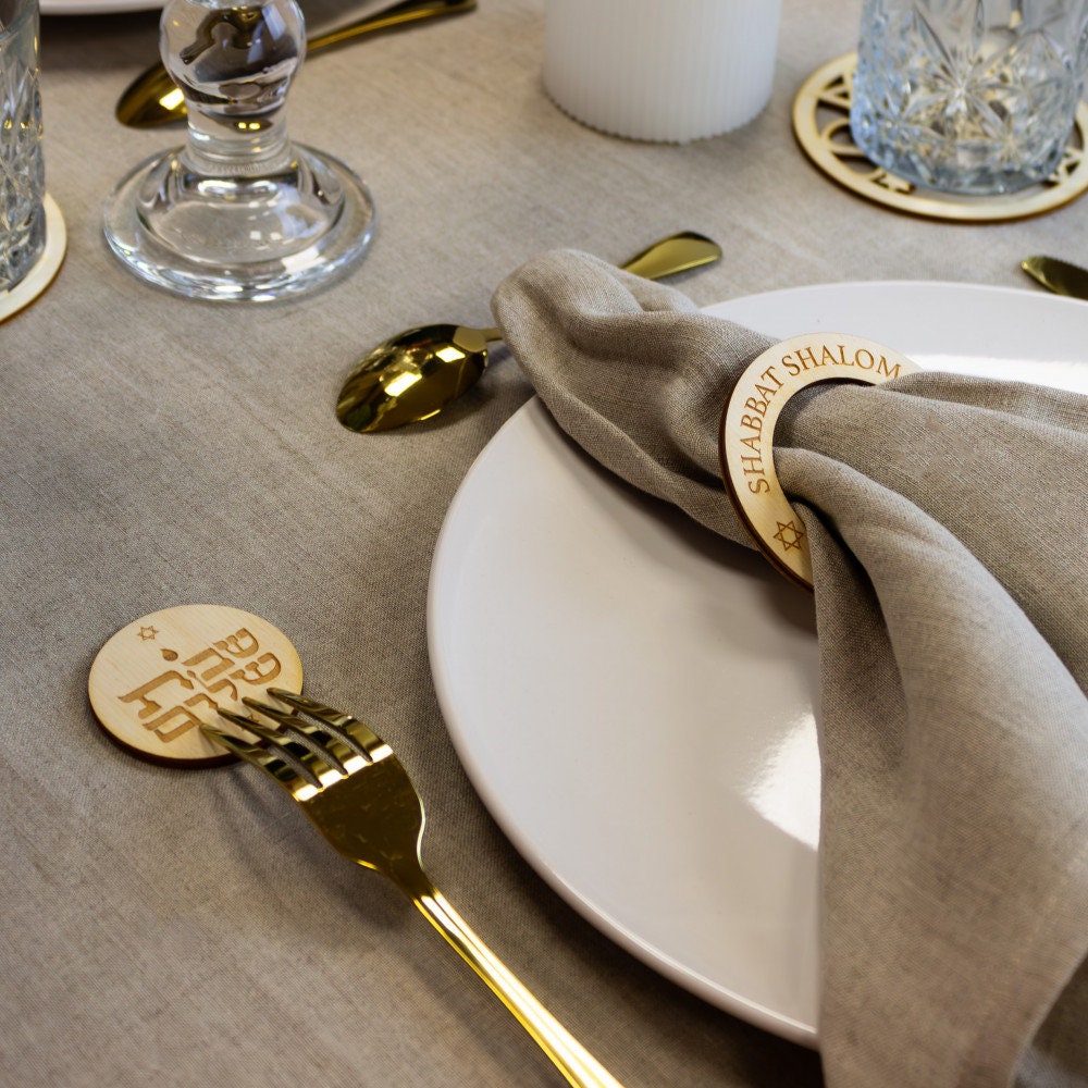 Collection exclusive de ronds de serviettes judaïques Découvrez notre gamme de ronds de serviettes juifs en forme d'Étoile de David avec gravure hébraïque. Ainsi, transformez vos tables grâce à ces décorations pour célébrations juives uniques et orignaux. Attention à bien enlever le film protecteur sur les ronds de serviette de table en verre acrylique. Tous vos proches pourront ainsi être accueillis autour d'une table conviviale et symbolique. Vendus par lot de 4 ou par lot de 6., DESIGN : Ces ronds de serviettes juifs sont disponible en 2 versions différentes : en forme de cercle simple avec l'Étoile de David au-dessus (existe dans toutes les matières) ou en forme de cercle Shabbat Shalom avec gravure hébraïque au centre (existe uniquement Bois). Des accessoires de table judaïques qui sauront représenter la paix et la richesse du judaïsme. Décoration Table Shabbat Fêtes Juives Lot De 10 Ronds De Serviette Shabbat Shalom - Ronds De Serviette Rond De Serviette Personnalisé Ronds De Serviettes En Argent Massif Un mariage de la culture judaïque et de l'artisanat français pour des ronds de se Ils sont disponibles en plusieurs formes, soit en cercle avec Étoile de David (au-dessus), soit en cercle simple avec gravure hébraïque Shabbat Shalom. Particularité de rond de serviette en bois, le centre où il y a la gravure se retire et peut être placé dans les assiettes. Mapart ronds de serviette verre lot de 6 verre transparent Nos ronds de serviettes de table en forme de cercle simple avec gravure Shabbat Shalom mesurent environ 7,4cm de diamètre extérieur et 3cm de diamètre intérieur. DIMENSIONS & ÉPAISSEUR : Ces lots de ronds de serviette juifs mesurent : Étoile de David 4cm de diamètre intérieur. COULEURS & MATÉRIAUX : Ces ronds de serviettes Shabbat Shalom et Étoile de David sont disponibles : soit en verre acrylique effet miroir Or ou Argent, soit verre acrylique opaque brillant Blanc ou Noir, ou encore en Bois avec gravure et symbole en hébreux. Hemobllo Lot de 6 ronds de serviette vintage en forme d'étoile de David à six pointes pour juifs : : MaisonRond de serviette décoratif pour les fêtes juives, cette pièce décorative ajoute une touche d'élégance et de tradition à votre expérience culinaire, rendant chaque repas spécial et mémorable. Ronds de serviette en vrac Améliorez votre décoration de table de vacances... La qualité exceptionnelle des matériaux vous garantit une solidité et une résistance à l'usure du temps. Shabbat Shalom 5cm de diamètre intérieur. Une décoration table unique et originale pour fêtes juives Vous préparez Shabbat, mais il vous manque de la décoration de table originale et unique ? Ces accessoires de table judaïques seront idéaux pour toutes vos célébrations religieuses juives !