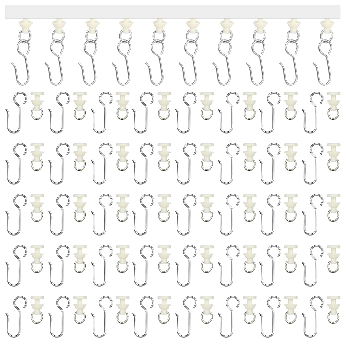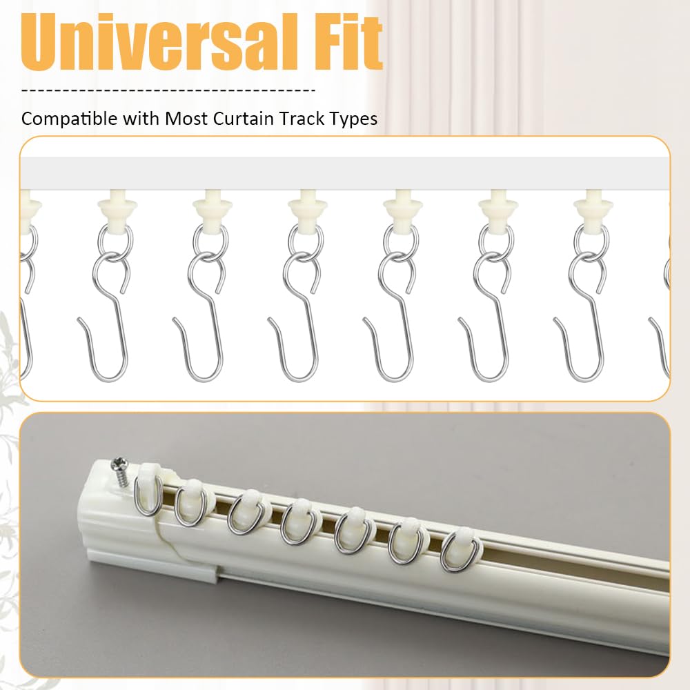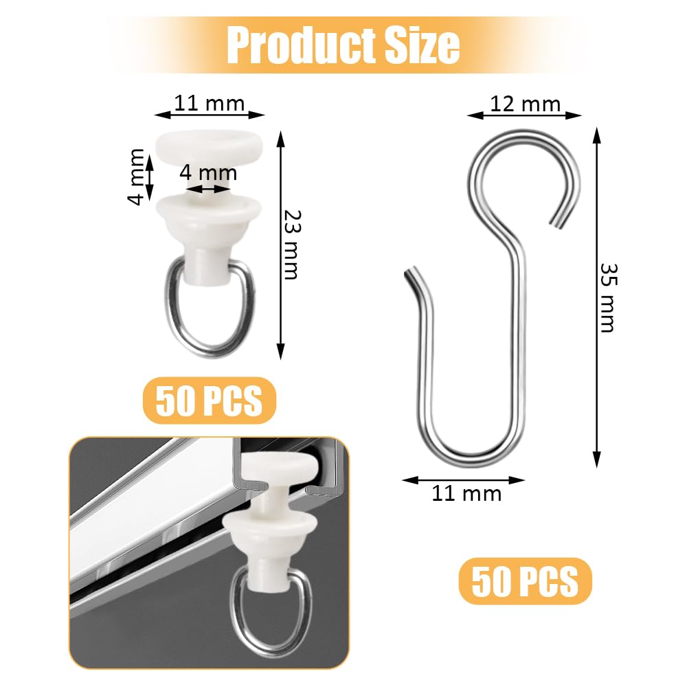 Crochets Pour Rideaux De Douche Lot De 100 Crochet Rideau Rail,avec 50 Pièces Glisseur Rail Crochets Pour Rideau De Douche Porte Large Gamme d'applications : Ces crochets rideaux sont compatibles avec la plupart des tringles à rideaux et peuvent être utilisés pour suspendre des rideaux, des rideaux de séparation, des rideaux de douche, des rideaux de fond, des décorations de Noël, etc. Ahlsen Rouleaux de Rail de Rideau-100 pièces rail intérieur Crochet de... Caractéristiques techniques : Matériau : Acier inoxydable et Plastique Couleur : Argent / Blanc Cassé Caractéristiques de conception : glissement fluide, conception silencieuse, matériau durable Le paquet comprend : 50 × Crochets Rideaux 50 × Glisseur Rail Rideau Le Paquet Comprend : Vous recevrez 50 pièces de crochets rideaux en acier inoxydable et 50 glisseurs rail rideaux, ce qui est suffisant pour les grandes fenêtres ou plusieurs pièces, répondant ainsi à tous vos besoins en matière de crochets à rideaux ou de remplacements en une seule fois Matériau Durable : Nos crochet rideaux sont en acier inoxydable, résistants à la corrosion, antirouille et lisses, sans bavures. Les glisseur rail rideau offrent un glissement fluide et silencieux des rideaux., 3., Fabrication soignée : Les crochets rideaux sont compatibles avec la plupart des tringles à rideaux, ce qui réduit le bruit lors du glissement. Les glisseur pour rail rideau sont en plastique de haute qualité, solides et durables, résistants à la rupture et parfaitement compatibles avec les tringles à rideaux Fluides et Silencieux : Ces crochet rideaux maintiennent fermement le tissu du rideau, empêchant tout glissement et garantissant que les rideaux restent bien plats, sans plis. Faciles à Installer et à Retirer : Installez d'abord les crochet pour rail rideau sur le rail, puis accrochez les rideaux à l'aide des crochets rideaux sur les crochet pour rail rideau, ce qui facilite le nettoyage quotidien ou le remplacement des rideaux. 100 Pièces Crochet Rideau Rail Glisseurs pour Rail à Rideaux