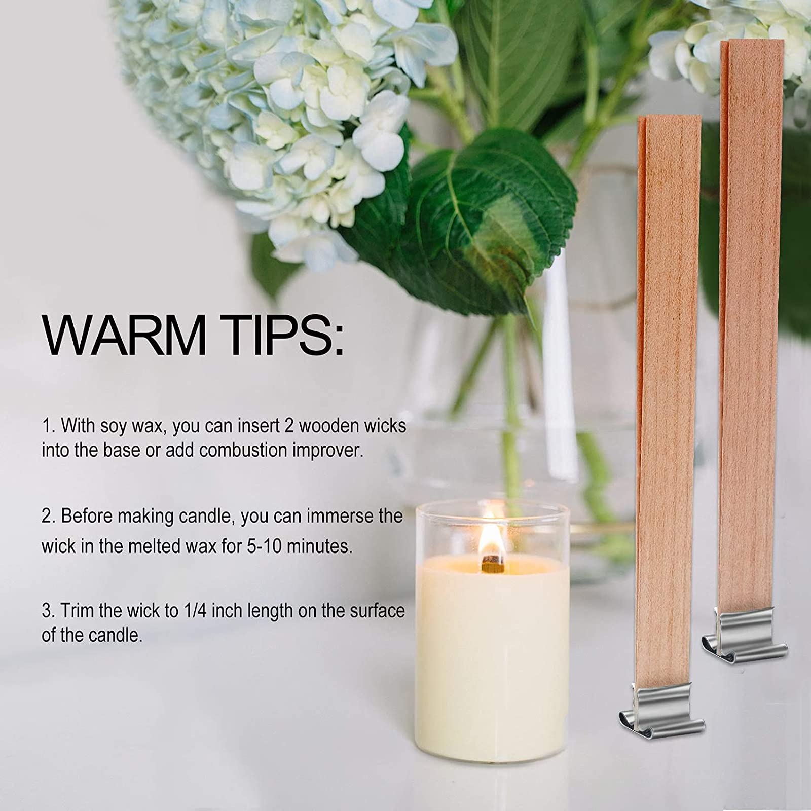 Parfait pour les projets de bricolage : que vous soyez débutant ou expérimenté, ces mèches en bois sont conçues pour une utilisation facile. Lot Mèches Bois Cerisier 4x12 Cm BOOWAN Nicole Lot De 100 Mèches En Bois Avec 50 Clips De Mèche, Ensemble Coupe-bougie Doré Pour Mèches Naturelles Sans Fumée Bougie Matériel: Contenu : 20 mèches en bois. Les mèches pour bougies en bois sont un choix très prisé par les amateurs de bougies. Contrairement aux mèches en coton traditionnelles, elles offrent une alternative durable et naturelle Elles sont conçues pour brûler uniformément et en douceur, ce qui minimise la formation de noir et améliore la qualité de vos bougies. Multi-usage : ces mèches sont compatibles avec une variété de types de cire, y compris la paraffine, la cire d'abeille, la cire de soja, la cire de palme, la cire de coco et la cire gel. Kit : le lot contient 20 mèches ondulées de haute qualité et 20 bases métalliques de 40 mm x 120 mm. Ce kit est parfait pour fabriquer plusieurs bougies... Design convivial : chaque mèche est livrée avec une base en métal qui aide à maintenir la mèche droite et stable pendant le processus de fabrication de bougies. Contenu du colis cité ci-dessus seulement, aucun autre produit n'est inclus. Idéal pour les bricoleurs et les fabricants de bougies professionnels qui souhaitent essayer différents supports de cire. Mèche en bois de hêtre avec socle - taille L | Latitude Nature Remarque : en raison de la réflexion de la lumière et des écrans, la couleur présentée sur les photos et celle du produit réel peuvent être légèrement différentes. Ce kit est parfait pour fabriquer plusieurs bougies sans avoir besoin de commandes fréquentes.