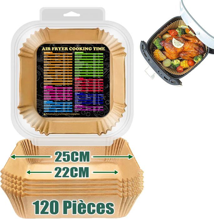 【Facile à utiliser et haute résistance à la chaleur】Les papiers de cuisson améliorés pour friteuse à air chaud ont une forme carrée pour mieux accueillir les aliments. Grâce à leur bonne résistance à la chaleur, ils peuvent supporter des températures allant jusqu'à 220 °C. Remarque : veuillez mesurer la taille de votre friteuse avant l'achat afin de vous assurer que notre produit est adapté à la taille de votre friteuse. Jetez simplement le papier sulfurisé pour friteuse à air chaud après utilisation, aucun nettoyage n'est nécessaire. Papier Sulfurisé carré pour Friteuse à Air,50 Pièces Papier de Cuisson Ils sont faciles à utiliser, ne se déchirent pas, ne se plient pas, ne se coupent pas et ne se tordent pas. Bordure de 4,5 cm de haut, protège le panier de votre friteuse à air chaud des restes de nourriture, des taches d'huile et des rayures, prolonge la durée de vie de la friteuse à air chaud. Papier Sulfurisé Carré Pour Friteuse À Air Xl,100 Pièces Papier Cuisson... Léger et pratique, il convient à la cuisson à la maison, au camping, aux barbecues, aux fêtes estivales, etc. Notre papier sulfurisé jetable pour friteuse à air chaud est biodégradable, respectueux de l'environnement et facile à éliminer. 【Convient à la plupart des marques de friteuses à air chaud de 4,5 à 8 litres】Accessoire parfait pour les friteuses à air chaud, il est compatible avec les friteuses à air chaud suivantes : Philips 6,2L, COSORI 5,5 /6 /6,2 /6,4 L, Cecotec 5,5 /6 /6,5 /7 L, Ninja 6,2 L, Tefal 6,5 L, Princess 5 /6 /6,5 L, KLAMER 5,5 L, autres friteuses à air chaud carrées de 4,5 L à 8 L. Papier Antiadhésif 120 Feuilles PAPIER CUISSON AIR Fryer 100 Pièces 16x16cm Carré Paper Sulfurisé Pour Friteu... EUR 22,75 - FR Air Fryer Philips DIMENSIONS : Le diamètre supérieur de ce papier pour friteuse à air est de 24 cm, avec une base de 20 cm. ➡️ INCLUS : 100 unités de papier carré jetable pour... Le papier pour friteuse à air chaud peut être utilisé pour cuire, rôtir, frire, cuire à la vapeur ou conserver des aliments.