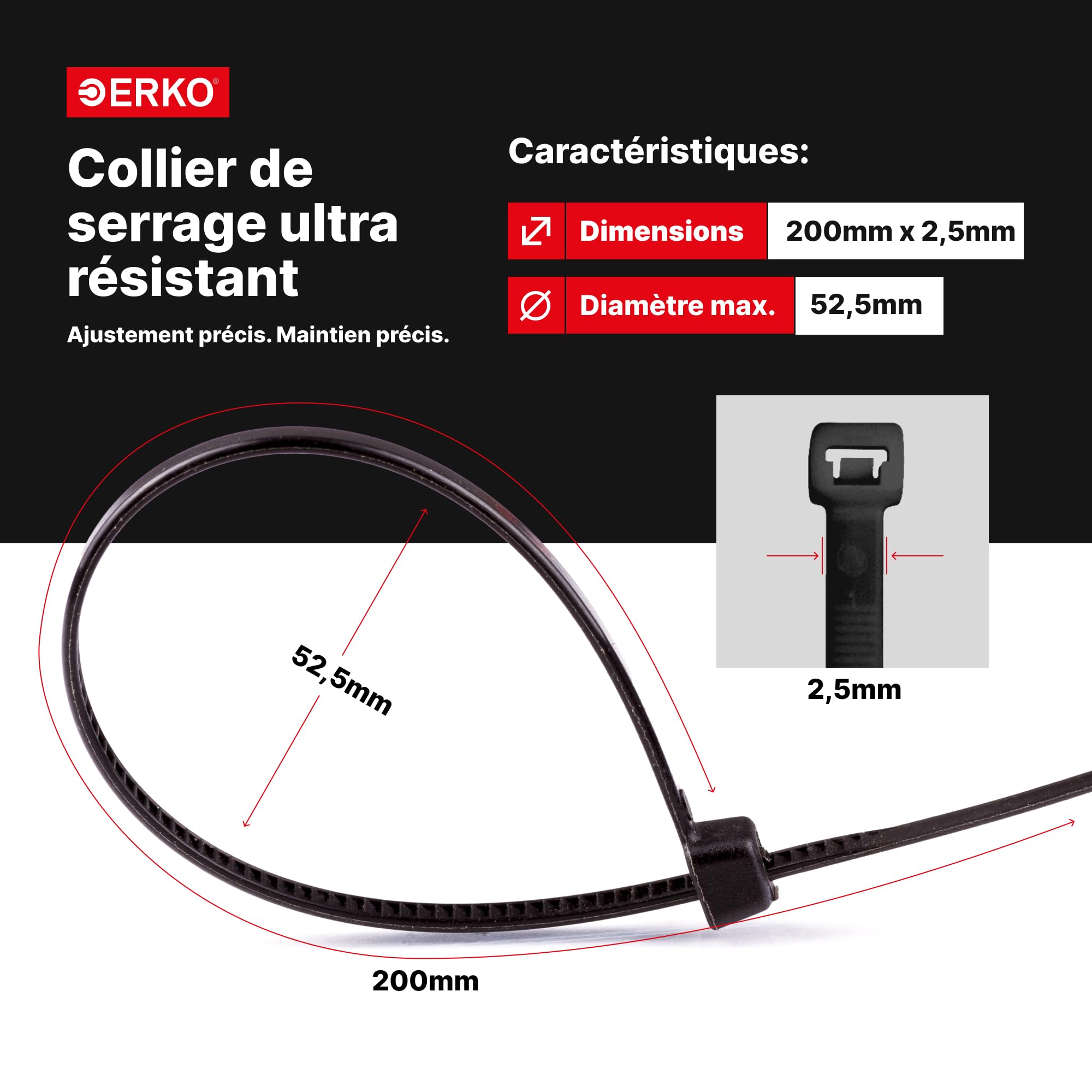 Colliers Serrage Polyamide 100 Pièces D'attaches De Câble Professionnelles 150 X 2,5 Mm Poignée D Colliers De Serrage 140mm Attache cable plastique - WURTH VOLTMAN Lot de 20 attaches câble professionnelles - Diamètre : 9 mm²... du faisceau : 24,00mm résistance à la traction : 6,00KP / résistance à la traction : 59,00N Matériel : Polyamide 6., 6 vert selon UL 94V-2 Charge de température de fonctionnement : -40°C - +85°C Température pendant l'installation : -10°C -+ 60°C Charge thermique courte maximale admissible : +110°C Température de fusion : +250°C Propriété du produit : - Qualité industrielle pour l'artisanat et le commerce - Résistant aux UV / pour l'extérieur - Convient aux demandes générales - Prêt pour une utilisation immédiate - Emballé dans un sachet en plastique - Colliers de serrage en polyamide 6., 6 - Bonne résistance à la température - Dureté de surface et résistance à l'abrasion élevées, bonne résistance aux chocs - Très bonne résistance aux produits chimiques, aux huiles et aux variations de température - Haute résistance à la traction avec une très faible force d'insertion Colliers de serrage en qualité industrielle pour utilisation dans la construction mécanique, l'électrotechnique, le commerce, la construction, l'agriculture, l'horticulture, pour tous les bricoleurs et les amateurs Couleur du collier de serrage : Noir Taille : 140 x 2., 5 mm en 100 pièces UE Caractéristiques techniques : Diamètre max. Résistant aux intempéries et aux UV - pour l'extérieur et l'intérieur., Fabriqué en polyamide 6., 6 de haute qualité Résistance à la température : -40 à +80 °C Point de fusion à environ : 250°C Protection : UL 94 V-2 Convient à toutes les surfaces UBRAVE Serre Câble Réutilisables, Lot de 100 d'attaches de Câble...