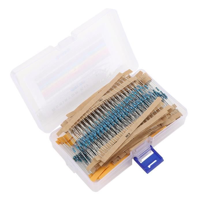 VEfacile d'accès - Chaque valeur est emballée et étiquetée individuellement, la valeur de résistance peut être lue en fonction de la couleur, facile à lire, un total de 2425 résistances à film de carbone peut être utilisé pendant une longue période. Kit Résistances 1000 Pièces 1/2W1-10M Ohms Assortiment De Résistances à Film Resistance Four Whirlpool Description : Il s'agit d'un ensemble de 1000 résistances professionnelles et pratiques à film de carbone 1/2W avec une précision de 5%. Il s'agit d'un ensemble de 1000 résistances professionnelles et pratiques à film de carbone 1/2W avec une précision de 5%. Ils se composent de 100 valeurs de résistance de 1ohm à 10Mohm, et chaque valeur comprend 10 résistances identiques. Il s'agit d'un ensemble de 1000 pièces de résistances à film...Il s'agit d'un ensemble de 1000 pièces de résistances à film... Tension de surcharge : 600 V Quantité : 10 pièces par ohm (total de 1 000 pièces) 1Ω 1., 2Ω 1,8Ω 2., 2Ω 3., 3Ω 4., 7Ω 5., 6Ω 6., 8 10Ω 12Ω 15Ω 18Ω 20Ω 22Ω 27Ω 30Ω 33Ω 43Ω 47Ω 51Ω 56Ω 68Ω 75Ω 82Ω 91Ω 100 120Ω 150 180Ω 200 220Ω 270 300 330 360Ω 390 430 470 510Ω 560Ω 680Ω 750 820Ω 1KΩ 1,2KΩ 1., 5KΩ 1,8KΩ 2KΩ 2., 2KΩ 2., 4KΩ 2., 7KΩ 3KΩ 3., 3KΩ 4., 3KΩ 4., 7KΩ 5., 1KΩ 5., 6KΩ 6., 8KΩ 7., 5KΩ 8., 2KΩ 9., 1KΩ 10KΩ 12KΩ 15KΩ 18KΩ 20KΩ 22KΩ 27KΩ 30KΩ 33KΩ 36KΩ 39KΩ 43KΩ 47KΩ 51KΩ 56KΩ 68KΩ 75KΩ 82KΩ 91KΩ 100KΩ 120KΩ 150KΩ 180KΩ 200KΩ 220KΩ 270KΩ 300KΩ 330KΩ 390KΩ 430KΩ 470KΩ 510KΩ 560KΩ 680KΩ 820KΩ 1MΩ 2MΩ 2., 2MΩ 10MΩ Le forfait comprend : 1000 pièces x résistances ✔ Haute qualité - Haute précision, bonne performance. 560pcs Film de carbone Résistances Kit d'assortiment Set 56 des... Tension de fonctionnement : 300 V Max. Avec des performances élevées et une facilité d'utilisation, ce sont vraiment de merveilleuses résistances à film de carbone à choisir. ✔Durable&Protégez l'équipement - La résistance à film de carbone de 1 ohm à 1 M ohm est parfaite pour une planche à pain enfichable sans soudure. sourcing map Lot de 30 résistances 910 ohms, 2 W 1% de tolérance à film métallique 5 bandes pour projets et expériences électroniques de bricolage Spécifications : Type : Résistance à film de carbone 1/2 W Tolérance de résistance : ±5 % L x diamètre : 8 x 3 mm/0,31 x 0,12 Plage de valeurs : 1 ohm ~ 10 M ohm Max. Convient aux étudiants, aux échantillons expérimentaux de maintenance, à l'ingénierie, etc.