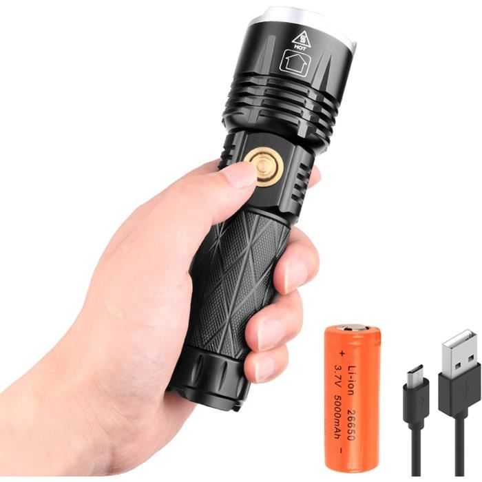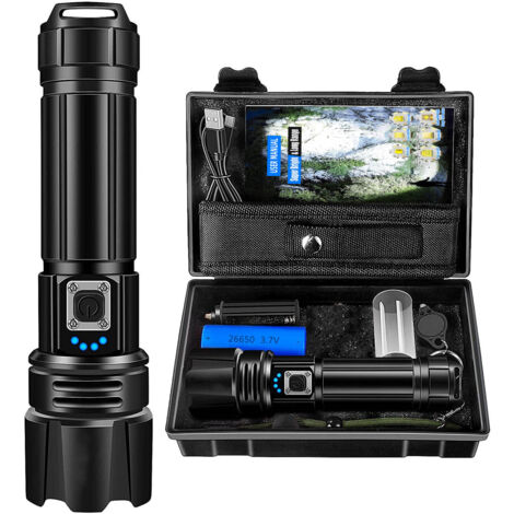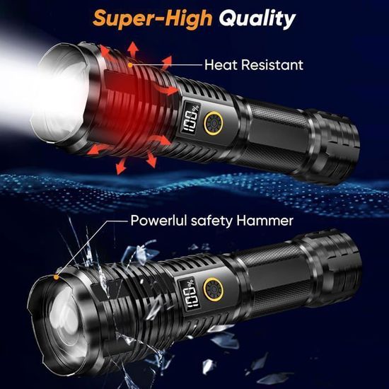 Gt60 10000 Lumens Lampe Torche Led Ultra Lumineuse Lampe De Poche Zoomable, 5 Modes, Résistant à l'eau (IPX5) Lampe Torche 10000 Lumens Camping Torche LED Ultra Puissante 10000 Lumens: Une Torche Militaire Tactique Incontournable Avec Recharge Usb 5 Modes Et Etanche Ipx4 85137014 Lampe Torche étanche Ipx5 Camping La densité énergétique super élevée et la super stabilité assurent l'endurance. L'affichage de la puissance est clair en un coup d'œil, et vous pouvez observer la puissance à tout moment, et vous n'avez pas peur des coupures de courant à l'extérieur Lampe Torche Led Ultra Puissante 10000 Lumens Lampe de Poche...