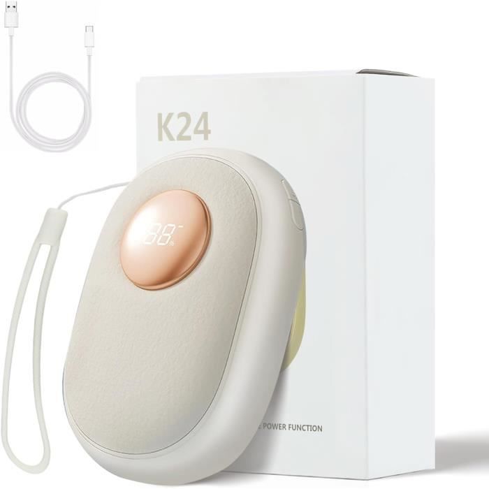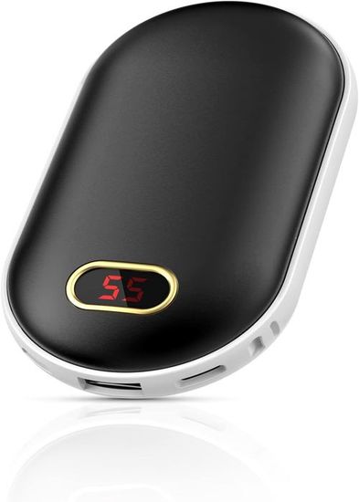 Chaufferette Rechargeable CHAUFFE-MAINS ÉLECTRIQUE 10000MAH Chauffe-Mains Mignon Bonhomme De EUR Chauffe-mains électrique 10000mAh Chauffe-Mains Rechargeable 10000mAh - Réutilisable - USB Portable Power Chauffe-Mains Rechargeable,10000mAh USB Powerbank avec Écran Numérique... 【Chauffe-Mains Électrique Modulaire 10000 mAh avec Fonction Magnétique】Composé de deux unités amovibles de 5000 mAh avec connexion magnétique, ce chauffe-mains de poche réutilisable peut être assemblé en un dispositif compact ou séparé pour réchauffer les deux mains simultanément. Profitez de 6 à 10 heures de chaleur continue par charge et d'une recharge rapide par USB-C - parfait pour une utilisation en extérieur. 【3 Niveaux de Température et Chaleur Instantanée】Choisissez parmi trois réglages de température précis : Bas (40°C), Moyen (50°C) et Élevé (60°C). Sa forme ergonomique assure une prise en main confortable et offre une chaleur fiable et durable - idéale pour les aventures en plein air ou les trajets quotidiens. 【Protection Intelligente et Système de Sécurité】Équipé d'une technologie de protection multiple, ce chauffe-mains réutilisable prévient efficacement les surcharges, surchauffes et courts-circuits. 【Set Cadeau Pratique pour la Saison Froide】Idéal comme cadeau de Noël ou d'anniversaire : ces chauffe-mains électriques sont parfaits pour la randonnée, le camping ou les promenades hivernales. Alliant fonctionnalité, design élégant et valeur sentimentale - l'attention parfaite pour les familles, navetteurs et amateurs de plein air. Chaleur prolongée : avec une grande capacité de batterie de 10 000 mAh, notre chauffe-mains fournit jusqu'à 6 heures de chaleur continue, vous gardant au chaud tout au long de vos aventures en plein air ou de vos déplacements quotidiens