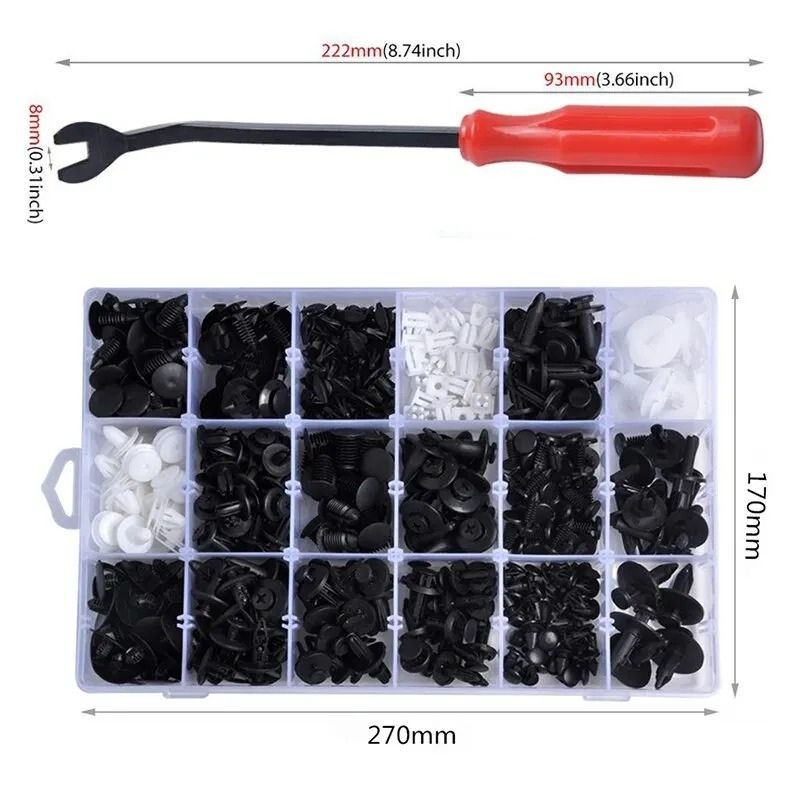 Attaches Carrosserie Pare-chocs Kit Réparation Pare-chocs Kit 105 Clips Fixation Voiture - 6 Tailles + 100 Rivets + 5 Outils Démontage - Compatible Plupart Modèles Outils Démontage Attaches Accessoires Réparation Automobile Kit Clips Plastique Auto 32 Tailles Réparation Voiture Kit Clips Auto 1420 Pièces - 32 Tailles Universelles - Pour Panneaux Et Pare-chocs Accessoires Carrosserie Panneaux Rivet Clips Plastique 925 Pcs, Clips Voiture Noir Universel Rivet Plastique Fixation, Clips de... 12 x Vis de voiture avec tête hexagone. 14 x Vis de voiture à tête plate. 🚗【 Vis de 80 PièCes et Jeu de Vestes D'éCrou】: 8 Clips u, 8 vis autopothérapeutes, 12 vis hexagonnes, 14 vis à tête plate, 12 clips en plastique, 12 clips en u-spring, 14 clips gris en u, agrafe carrosserie suffisant pour remplacer les vieilles vis de carrosserie anciennes ou endommagées 8 x Boulons de voiture. 🚗【 Facile à Installer Et à Remplacer】: Rivet plastique aucun outil supplémentaire requis, la conception intégrée assure une connexion ferme et réduit le glissement pendant l'installation,les fils profonds et clairs assurent une force de morsure élevée, un remplacement direct et un ajustement parfait 🚗【 Clip D'éCrou TôLe en Forme de U】: Vis plastique améliore la scellage de l'installation et empêche les vis de se desserrer ou de tomber,il améliore non seulement la sécurité, mais étend également efficacement la durée de vie du moteur et correspond parfaitement à votre voiture 🚗【 CompléTé Dans La Plupart Des Voitures】: Clips plastique voiture convient à l'installation et à la remplacement des clips décoratifs de porte, des pare-chocs, des ailes, des capuchons, des radiateurs, des supports de éclaboussures et du remplacement des plaques d'immatriculation de voiture et de moto, etc. Grand MatéRiau]: Nos 80 pièces vis carenage moto sont en métal et en plastique de haute qualité, avec une résistance à l'usure à haute résistance, une résistance à la rouille et une résistance à l'oxydation, offrant une durabilité et une stabilité à votre voiture