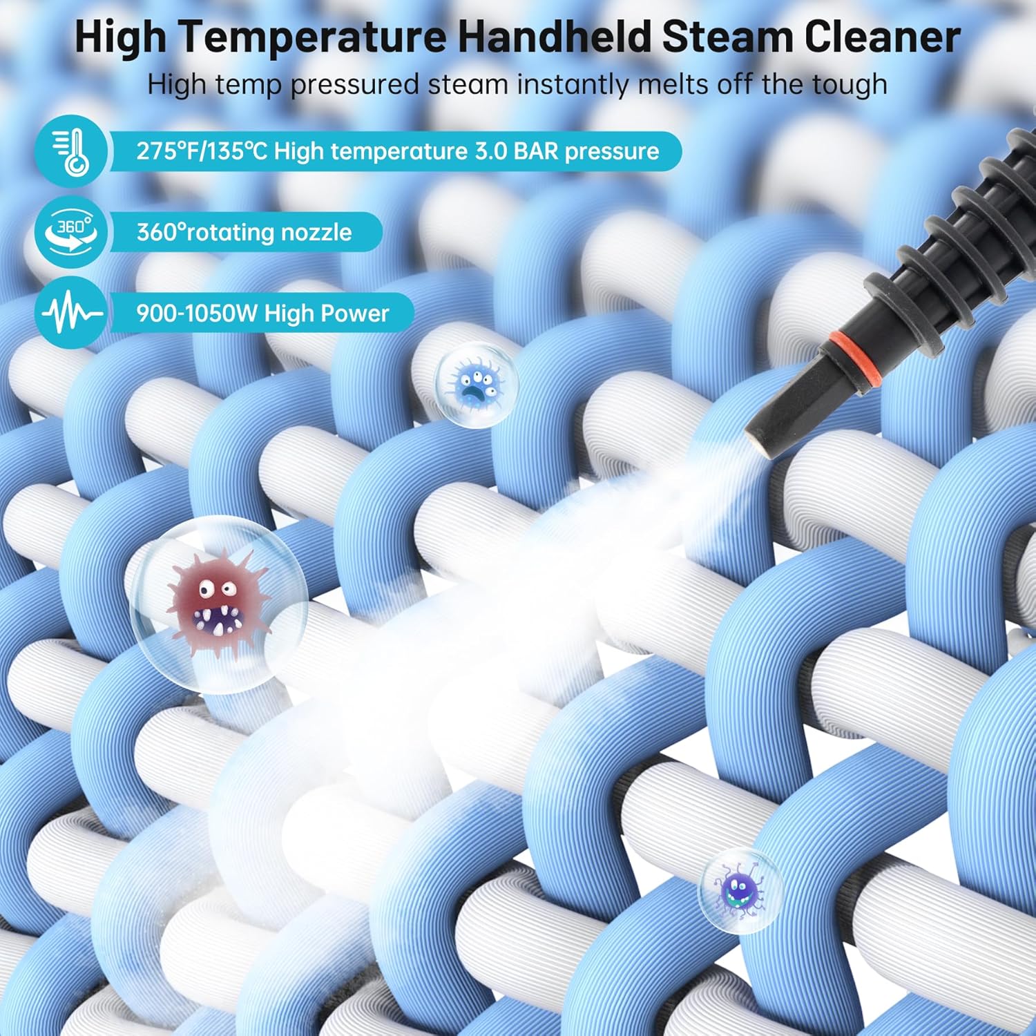 Utilisez uniquement de la vapeur pour le nettoyage. La buse rotatig à 360 ° peut nettoyer les angles morts., 6., Application large Le nettoyeur à vapeur peut être utilisé pour nettoyer lampe à lampe fumée, la machine à laver, le mur, le sol, la fenêtre, la porte, le rembourrage et plus, largement appliquée dans la cuisine, la salle de bain, les meubles, la voiture, etc. Nettoyage en profondeur : tuyau extensible pour pénétrer dans les espaces restreints et les zones difficiles d'accès pour un nettoyage en profondeur. Fabriqué en matériau ABS de haute qualité, sans vapeurs chimiques ni résidus. Promotion nettoyeur vapeur portable haute température Kavolet à 43,83 Il s'éteint automatiquement si l'eau du réservoir s'épuise., 3., Température élevée et pressurisée Avec 1050W élevée pour générer 135 ℃ -169 ℃ haute température, la vapeur de pression jusqu'à 3,0, élimine efficacement la saleté graisseuse et les substances nocives., 4., grande capacité U0026 Chauffage rapide 350 ml Capacité du réservoir d'eau (recommande de remplir 250 ml d'eau) peut fournir de la vapeur continue pendant environ 10 minutes sans ajouter fréquemment d'eau. Design convivial : le capuchon de sécurité sur le dessus et le verrouillage de sécurité sur la poignée vous protègent contre les brûlures et garantissent ainsi une utilisation sûre. Nettoyeur vapeur multifonction 19 en 1 pour sols et tissus dameublement... 9 accessoires : livré avec 9 accessoires différents, moteur principal, brosse, gobelet doseur, tuyau extensible, brosse à récurer, buse droite, couvercle de chiffon de nettoyage, entonnoir, essuie-vitre, buse de pulvérisation pour répondre à vos différents besoins de nettoyage. Haute température et pression : avec une puissance élevée de 1050 W pour produire une température élevée de 135 °C à 169 °C et une vapeur de pression allant jusqu'à 3,0 bar, la saleté grasse tenace et les substances nocives sont efficacement éliminées. Grande capacité et chauffage rapide : la capacité du réservoir d'eau de 350 ml (il est recommandé de remplir 250 ml d'eau) peut fournir une vapeur continue pendant environ 10 minutes sans avoir besoin d'ajouter fréquemment de l'eau. Nettoyeur Haute Pression 3 Bar Kavolet Nettoyeur Vapeur à Main 1050 W, Nettoyeur Vapeur Avec Nettoyeur Vapeur 1050W Le nettoyeur vapeur peut être utilisé pour nettoyer la suie de la lampe à fumée, la machine à laver, les murs, les sols, les fenêtres, les portes, les tissus d'ameublement et plus encore. Il est largement utilisé dans les cuisines, salles de bains, meubles, voitures, etc La buse rotative à 360° peut nettoyer les angles morts.