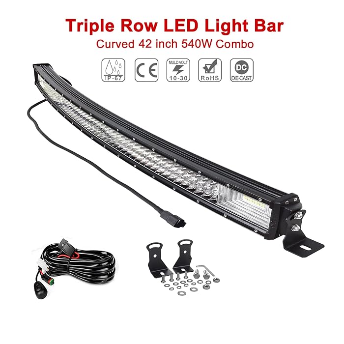 Les modes incluent : marche/arrêt/flash rapide (3-4 flashs par seconde)/flash lent (1-2 flashs par seconde). Modèle de faisceau: faisceau combinés d'inondation spot. Ajustez-le selon vos préférences. Volkswagen Transporter - Caravelle T5 Faisceau de câblage de porte... Barre LED Super Brillante:Système optique à trois rangées de DEL,spot et Inondation projette la lumière à une distance extrême dans l'obscurité et maintient l'éclairage ambiant brillant dans une plage plus étendue; Mise à niveau du réflecteur: la large plaque réfléchissante des deux côtés permet une réfraction sous plusieurs angles, idéale pour l'éclairage ambiant Dissipation de chaleur efficace Les ventilateurs de refroidissement mis à jour et le boîtier en aluminium de haute qualité de moulage sous pression favorisent la dissipation de chaleur efficace. 540W 42& BARRE à LED Droit phare de travail Rampe Feux offroad 12V 24V... Éclairage de bateau Nos barres lumineuses à LED peuvent être installées sur un bateau, un yacht, un skiff, un fret et un bateau pour améliorer la luminosité lumineuse du voyage. Il est efficacement imperméable, anti-poussière et anti-corrosif. Kit Câblage 12V Avec Télécommande AUXTINGS Courbé 106 Cm 540W LED Barre D'éclairage Avec 12V Rampe Led 4x4 12V kit de câbles pour faisceau de câblage avec télécommande. LifePan: plus de 20,000 heures. Compatibilité d'utilisation large: application pour des véhicules tels que VTT, UTV, SUV, camion, voiture, 4x4, moto, SUT, bus, métro ., ., ., ; Autres pour tour, bulldozer, tracteur, charrue, fourgon, ambulance, ou véhicules, projecteur de jardin, garage ., ., . Haute Performance: Cette rampe LED est composée d'un boîtier en alliage d'aluminium moulé sous pression et d'un gel de silicone à conduction thermique de haute qualité; Il peut maximiser la surface pour mieux dissiper la chaleur . Éclairage d'équipement Notre barre LED est adaptée pour remorque, chariot élévateur, pelleteuse, dozer, rouleau de route, grue, tracteur, moissonneuse, perceuse à grain, tondeuse, chasse-neige, camion de pompiers, véhicule de sauvetage, camping, exploitation minière, construction et autres éclairages extérieurs. Dimension: 42 pouces (106 x 6,5 x 8) cm Kit de faisceau de câblage de 3 mètres adapté à la plupart des véhicules. Faisceau de câblage universel de 3 mètres avec interrupteur à distance Deux contrôleurs : interrupteur marche/arrêt avec voyant rouge et vert lors de l'allumage, facile à allumer ou à éteindre, longue durée de vie. Température de couleur LED: blanc pur 6000K En tant qu'innovateurs dans la prise de décision, nous proposons des produits à des clients dans différents pays. Puissance LED: 540W (180 morceaux de LED d'intensité de 3W) Connexion simple : équipé d'un connecteur DT, pas de câblage entre la barre lumineuse LED et le kit de faisceau, installation simple et facile. 540W 44& COURBÉ Barre à LED phare de travail Rampe Feux offroad 12V 24V Support de montage réglable, la barre de lumière peut être ajustée à environ 360 degrés.