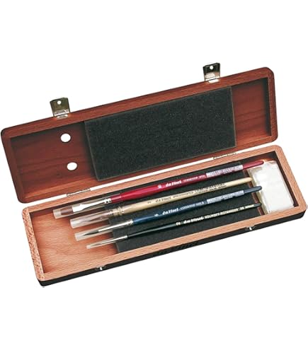 da Vinci, Signature CESC FARRÉ, Coffret, Maestro & CASANEO, pinceaux pour Aquarelle, pour Papier, élégant Coffret en Carton avec Fermeture magnétique, fabriqué en Allemagne, Tailles 4, 8, 4, 12 et 4 Coffret Pinceaux Série 10 Da Vinci Series 11 Maestro, Pinceaux Aquarelle Ronds, Martre Kolinsky, Touffe En Forme Anglaise,Lot De 3. NO° 2/0, 1, 2 Fabriqué En Allemagne Cadeau Artiste Boîte Noire Set de 3 pinceaux ronds pour aquarelle dans une belle boîte cadeau. Poils de martre rouge de Sibérie pour des coups de pinceau doux et précis, avec une grande capacité d´absorption et de flexibilité Le cadeau parfait pour les aquarellistes., Fabriqué en Allemagne. Pinceau aquarelle Maestro Da Vinci, série 11, rond Kolinsky | Le Géant des Beaux-Arts - N°1 de... Poignées courtes noires polies , Virole en argent Livré dans un coffret cadeau