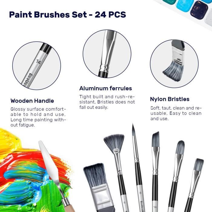 PINCEAUX - PEINTURE ET MATÉRIEL DE MODÉLISME | JEUX, CASSE-TÊTES ET PUZZLES Que ce soit pour les contours délicats ou la coloration de zones étendues, vous trouverez l'outil adapté. Lot 11 Pinceaux Nylon Tailles Variées 11 Pièces Pinceaux Peinture, Pinceau De Peinture Numérique, Pinceaus Pinceau Maquette Options de taille multiples : Le Lot de Pinceaux Peinture comprend plusieurs pinceaux de différentes tailles (00000, 000, 00, 0, 1, 2, 3, 4, 5, 6, 7), couvrant tous les besoins, des lignes extrêmement fines aux plus grands détails. BROSSE POUR PEINDRE--Ensemble de pinceaux miniatures de peintures fine... Lot de 11 pinceaux de peinture de détail pour peinture acrylique, aquarelle, gouache, huile, peinture miniature, maquette, figurine professionnelle... Idéals pour les créations artistiques de haute précision telles que la peinture de modèles ou l'art miniature. Les manches en bois sont recouverts d'une peinture protectrice noire pour prévenir efficacement le vieillissement et les dommages, garantissant qu'ils résistent à la déformation ou à l'usure lors d'une utilisation prolongée. Prise ergonomique confortable : Le manche triangulaire en bois est conçu ergonomiquement pour offrir une prise confortable et stable, réduisant efficacement la fatigue de la main et permettant une peinture plus facile et plus concentrée lors des longues sessions. Que vous soyez un amateur ou un professionnel, il peut gérer une variété de tâches de peinture détaillées. Précision des détails : Les Pinceau Maquette possèdent une pointe effilée précisément conçue, offrant une forte absorption de la couleur et une libération uniforme des teintes vibrantes, parfaitement adaptée pour traiter les détails complexes. Quels sont les avantages de nos pinceaux artistiques ? 1., Pinceau fin Peinture complet pour répondre à tous vos besoins de détail : Cet ensemble comprend 10 mini pinceaux de tailles 00000, 000, 00, 0, 1, 2, 3, 4, 5, 6 et 7, vous offrant les outils parfaits pour créer des œuvres d'art riches en détails.