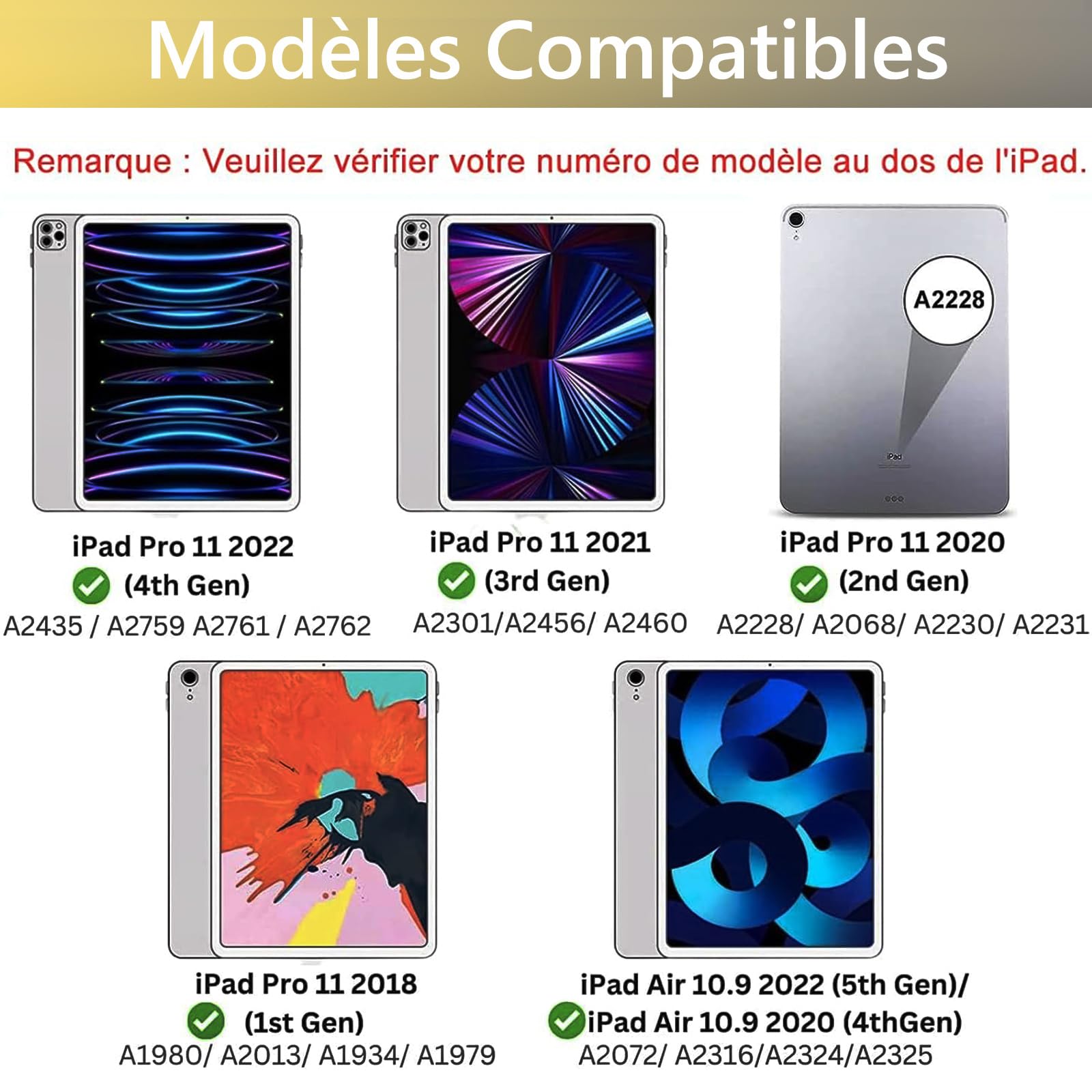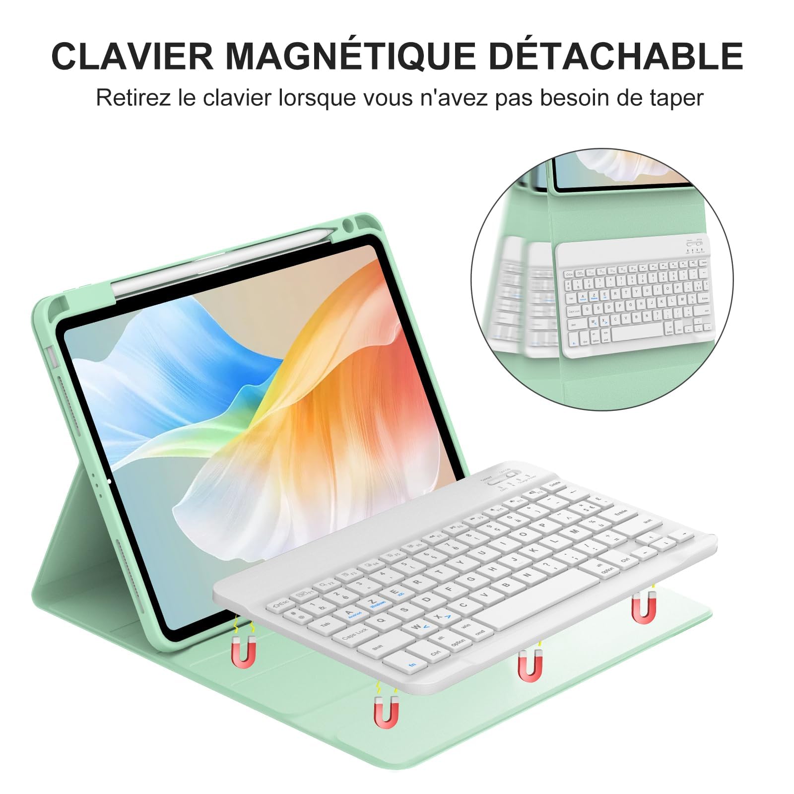 Coque Ipad 11 Clavier AVNICUD Clavier Pour IPad Air 11" 2024/2025 (M2/M3)/ Air 5ème/4 ème Génération 10.9", Coque Clavier Pour IPad Pro 11" 4/3/2/1 Gen, Clavier Français AZERTY Magnétique Détachable Bluetooth, Noir Clavier Ipad 【Service parfait】 Achetez notre couvercle de clavier iPad Air 11 2025/2024, iPad Air 5 ème/4ème génération 10., 9 2022/2020, iPad Pro 11 4/3/2/1 Gen (2018-2022) avec confiance. Clavier Ipad 6Ème Génération - Clavier Ipad 5Ème Génération, Étui Clavier Pour Ipad Pro 9.7... Package: 1 couvercle du clavier, 1 x câble de charge USB-C, 1 x instructions de fonctionnement. 【Clavier magnétique amovible】: Le couvercle du clavier de l'onglet iPad Air 11 2024/2025/iPad Air 5 eme Gen/4eme Gen 2022/2020, iPad Pro 11 est magnétiquement attaché au boîtier robuste et peut être facilement retiré lorsqu'il n'est pas utilisé. La batterie de 420 mAh avec une grande capacité est plus économique et réduit la consommation. Veuillez vérifier votre modèle iPad avant d'acheter. 【Protection complète et soutien au stylo】: La couverture de protection premium pour le iPad Air 11 2025/2024/iPad Pro 11 2022/2021/2020/2018, iPad Air 5/4 10., 9 2022/2020 se compose de PU flexible pour protéger votre tablette contre les bas et les rayures accidentelles et offre une protection complète pour le corps. Les recoins précis permettent un accès complet à toutes les connexions. Ce couvercle du clavier pour le iPad Air 11 2025 a 3 rainures pour les angles de visualisation réglables, et la conception non glissante et prévenante vous permet de régler facilement l'angle pour plus de confort. AVNICUD Clavier sans Fil Bluetooth - Keyboard pour iPad Pro/Air/Mini
