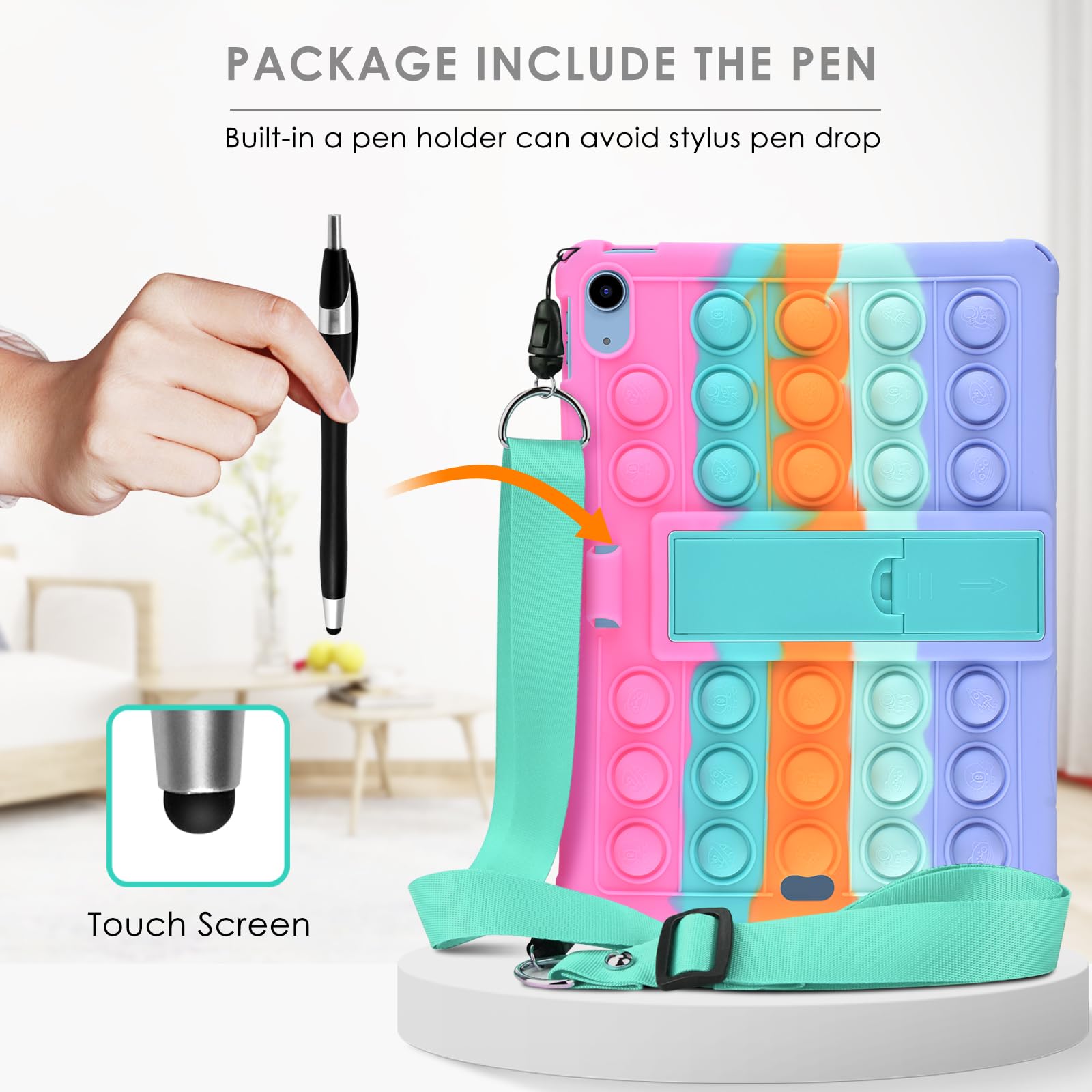 Coque Ipad 10eme Generation NLR FUN Coque Pour Enfants Pour IPad, Housse Antichoc Pour IPad A16 11" ( 2025) / IPad 10,9" 10e Génération (2022), Étui De Protection Complet Léger Avec Poignée/Support Pliable (Bleu + Vert Protection Ipad A16 Coque pour iPad 11 (A16) / iPad 10,9 10e Génération Apple iPad 11e génération (2025) - Tablette Wi-Fi 11 pouces, 128 Go... Veuillez vérifier le modèle de votre iPad avant d'acheter Découpe précise : accès facile à toutes les prises, ports et boutons sans retirer l'étui. Matériau en silicone de haute qualité : le silicone de haute qualité est sans danger pour les bébés et les enfants et peut être rincé directement à l'eau. Compatibilité : spécialement conçu pour l'iPad (A16) 11e génération 11 pouces 2025 (modèles : A3354, A3355, A3356) et l'iPad 10e génération 10,9 pouces 2022 (modèles : A2696, A2757, A2777). Grâce aux propriétés souples du silicone, l'étui peut être plié à volonté sans se déformer. Bandoulière et stylet réglables : l'étui pour iPad 11/10 Gen 11/10,9 pouces 2025/2022 est livré avec une bandoulière et un stylet. Vous pouvez attacher les bandoulières aux quatre coins de l'étui pour transporter votre tablette à la verticale ou à l'horizontale. Conçue pour s’adapter à tous vos besoins, cette coque verte offre une fonction support ajustable avec plusieurs positions d’inclinaison, idéales pour la lecture, la saisie ou le visionnage de vidéos