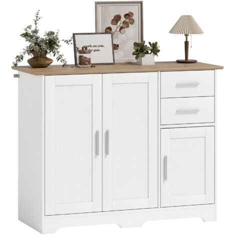 INFORMATIONS DE L'ARMOIRE DE CUISINE : Dimensions totales : 120l x 40P x 90H cm, Charge max. Meuble Salon Cuisine 2 Portes étagères Buffet Cuisine Avec 2 Portes 114x51x91 CM Meuble De Rangement Moderne Avec Étagère Réglable Pour Salon Salle à Manger Blanc CW17870 | Leroy Merlin Meuble De Rangement Cuisine Descriptions Longues:Le buffet HOMCOM, chic et polyvalent, convient à tous les espaces. Vous trouverez tous les styles de déco : du meuble design et moderne au traditionnel pour revoir l’aménagement de vos pièces ou préparer un emménagement ÉTAGÈRES MODULABLES : Ce meuble de rangement offre des étagères internes réglables sur trois niveaux différents, le rendant adapté pour des articles de diverses dimensions, excellent comme cabinet d'appoint ou pour divers besoins de rangement. DESIGN RAFFINÉ : Introduisez une touche de modernité dans votre décor avec ce buffet à cannelures qui fait double emploi comme un sideboard élégant ou un meuble café sophistiqué, fusionnant avec aisance esthétique et utilité. FOREHILL Buffet de Cuisine Aroire de Cuisine Haute euble Cuisine... Caractéristiques:● L'armoire à double porte peut contenir des accessoires et ustensiles quotidiens ● Étagère réglable à 3 niveaux pour s'adapter à différentes hauteurs d'objets ● Le design cannelé apporte une touche moderne à l'intérieur ● Cette armoire de cuisine peut servir de buffet, meuble de salle de bain, ou placard d'entrée ● Les pieds en métal surélevés facilitent le nettoyage ● Le design anti-basculement de ce meuble de rangement améliore la sécurité en prévenant les chutes ● La construction en MDF peint est facile à entretenir ● Montage nécessaireSpécifications:● Couleur : blanc ● Matériau : MDF ● Dimensions totales : 120l x 40P x 90H cm ● Dimensions de l'étagère : 56,5l x 36,5P cm ● Hauteur du bas : 15 cm ● Charge max. Avec deux armoires à double porte et étagères ajustables, il est idéal comme meuble de rangement de cuisine, meuble à café, ou support TV pour écrans jusqu'à 55 pouces. CONSTRUCTION ROBUSTE : Doté de pieds métalliques élevés facilitant le nettoyage et conçu avec un système anti-renversement pour plus de sécurité, ce buffet en MDF peint est simple à maintenir. Buffet - HOMCOM - 2 portes, 2 tiroirs et étagère réglable, pieds Optimisez l'organisation et le style de votre maison facilement ! Équipé de patins ajustables pour une stabilité accrue.