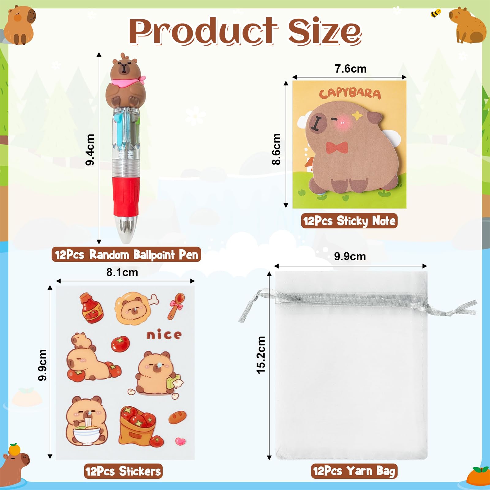 Les parents n'ont plus à s'inquiéter de l'organisation des anniversaires d'enfants Page de coloriage de capybara pour enfants » Téléchargement gratuit... Aucun enfant ne peut résister à ces jolis designs. Kit de fête d'anniversaire pour enfants : 12 crayons de couleur + 12 épinglettes + 12 bracelets à clip parfaitement assortis à 12 sacs cadeaux – chaque enfant reçoit son propre sac merveilleux. Sacs Cadeaux Capybara Anniversaire Pinkgarden Cadeaux Capybara Pour Filles 5-12 Ans, Peluche Avec Agenda Verrouillable, Stylo à Bille, Porte-clés, Autocollants, Set Capybara Mignon Pour L'anniversaire Ou Noël Des Enfants Idée Fête Jungle Animaux Garçons Filles Le motif de fête parfait qui fera battre le cœur de chaque enfant. Description du produit Vous cherchez encore des cadeaux de fête créatifs qui séduisent vraiment ? Notre coffret cadeau Capybara répond à toutes les exigences de fête Aucun enfant ne peut résister à nos adorables ensembles – la solution parfaite pour les yeux des enfants éclatants Respectueux de l'environnement et recyclable - La solution parfaite pour distribuer des cadeaux sans stress Pratique et amusant : les stylos sont parfaits pour l'école, les porte-clés et les bracelets peuvent être portés quotidiennement, les autocollants décorent les cahiers et les jouets. Matériaux sûrs : tous les produits sont fabriqués à partir de matériaux de qualité supérieure, sans danger pour les enfants, les sacs cadeaux en papier kraft sans chlore, les bracelets en silicone souple (résistant aux blessures) et les autocollants avec colle amovible sans laisser de résidus. Les parents n'ont plus à s'inquiéter de l'organisation des anniversaires d'enfants Combinez les ensembles avec des biscuits faits maison ou des mini-livres – les poches spacieuses peuvent tout ranger Comprend 12 autocollants Capybara à distribuer librement ou comme surprise supplémentaire. Parcourez notre sélection de cadeau d'anniversaire capybara : vous y trouverez les meilleures pièces uniques ou personnalisées de nos boutiques Ces personnages joliment illustrés font de cet ensemble un objet de collection convoité 100 % adapté aux enfants - Pour un cadeau sans souci Accessoires Fête Capybara Kit Cadeaux Anniversaire Capybara - 86