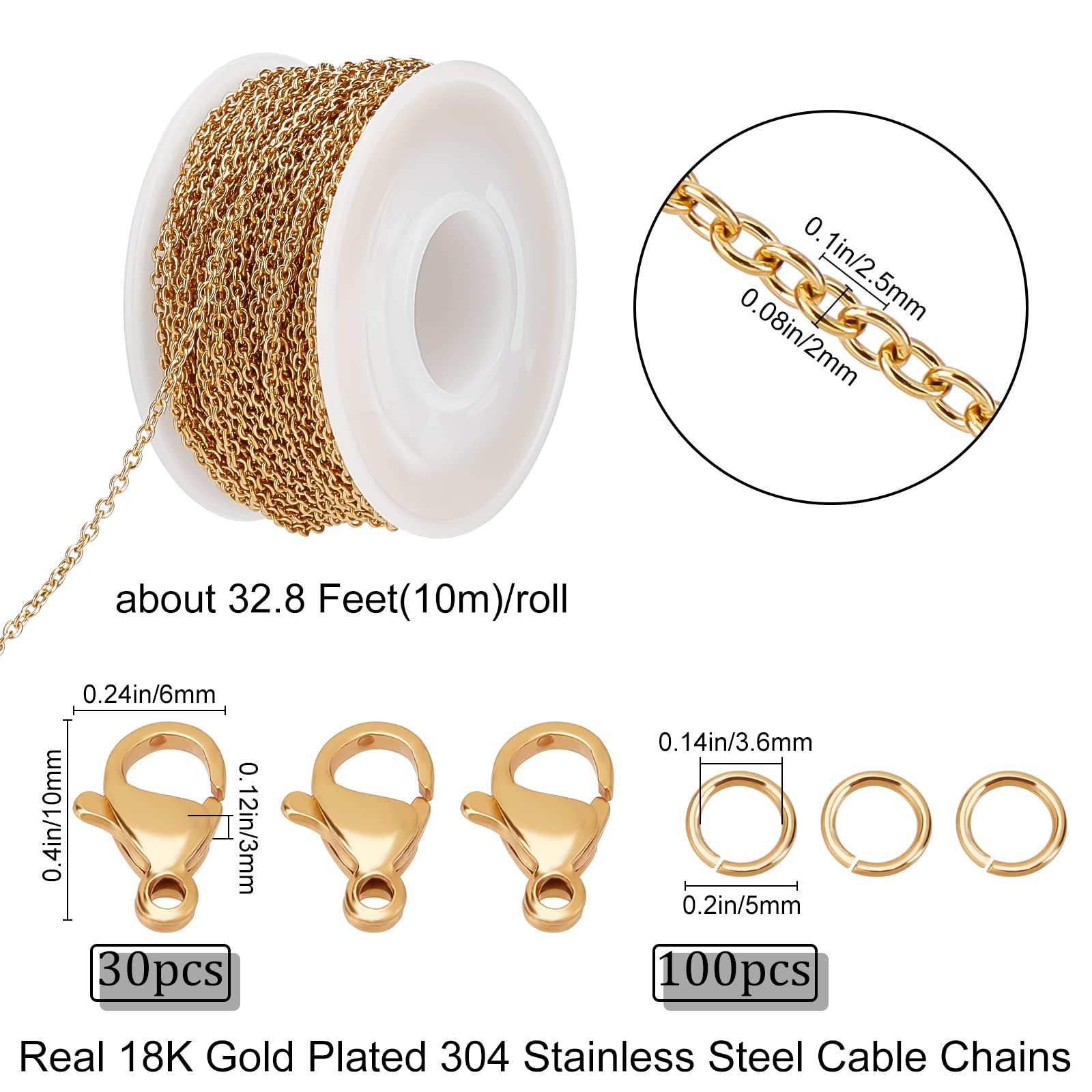 Beebeecraft Chaînes de Câble en Laiton de 16.4 Pied Chaîne à Rouleau Chaîne 5 Mètres Bijoux DIY Chaine Bracelet Acier Inoxydable Beebeecraft Lot De 12 Chaînes De Collier à Maillons En Acier Inoxydable 304 Avec Fermoirs Mousquetons Et Extension De Chaîne Pour La Fabrication De Bijoux (2 Mm Chaine Rouleau Chaîne Collier DIY 5 Mètres Large utilisation : les chaînes peuvent être coupées à la longueur souhaitée et fonctionnent avec des anneaux de saut et un fermoir mousqueton., parfait pour les colliers de bricolage, Pendentifs d'oreilles, Bracelets, bracelets de cheville et chaîne de corps Bijoux Contenu de l'emballage:chaîne de collier x 1 rouleau:5 mètres (16., 4 pieds) de long, fermoirs à pince de homard x 10 pièces:10x6., 5x3mm (0., 39x0., 26x0., 12 pouces), anneaux de jonction x 30 pièces:6mm (0., 24 pouces) de diamètre extérieur et 4., 5mm (0., 18 pouces) de diamètre intérieur Acier inoxydable 304] : la chaîne est fabriquée en acier inoxydable 304, qui ne rouille pas et ne se décolore pas facilement, et dure aussi longtemps que... Large gamme d'utilisation:ces chaînes de collier peuvent être utilisées pour fabriquer des colliers délicats, Bracelets, bracelets de cheville, chaînes de taille, chaînes en couches, accessoires de sac Facile à utiliser et à ranger:notre rouleau de chaîne à maillons en étoile est livré dans une bobine pour éviter les nœuds, et équipé d'anneaux de jonction et d'un fermoir mousqueton, pratique pour vous connecter, vous pouvez le couper à la longueur souhaitée et l'enrouler lorsqu'il n'est pas utilisé