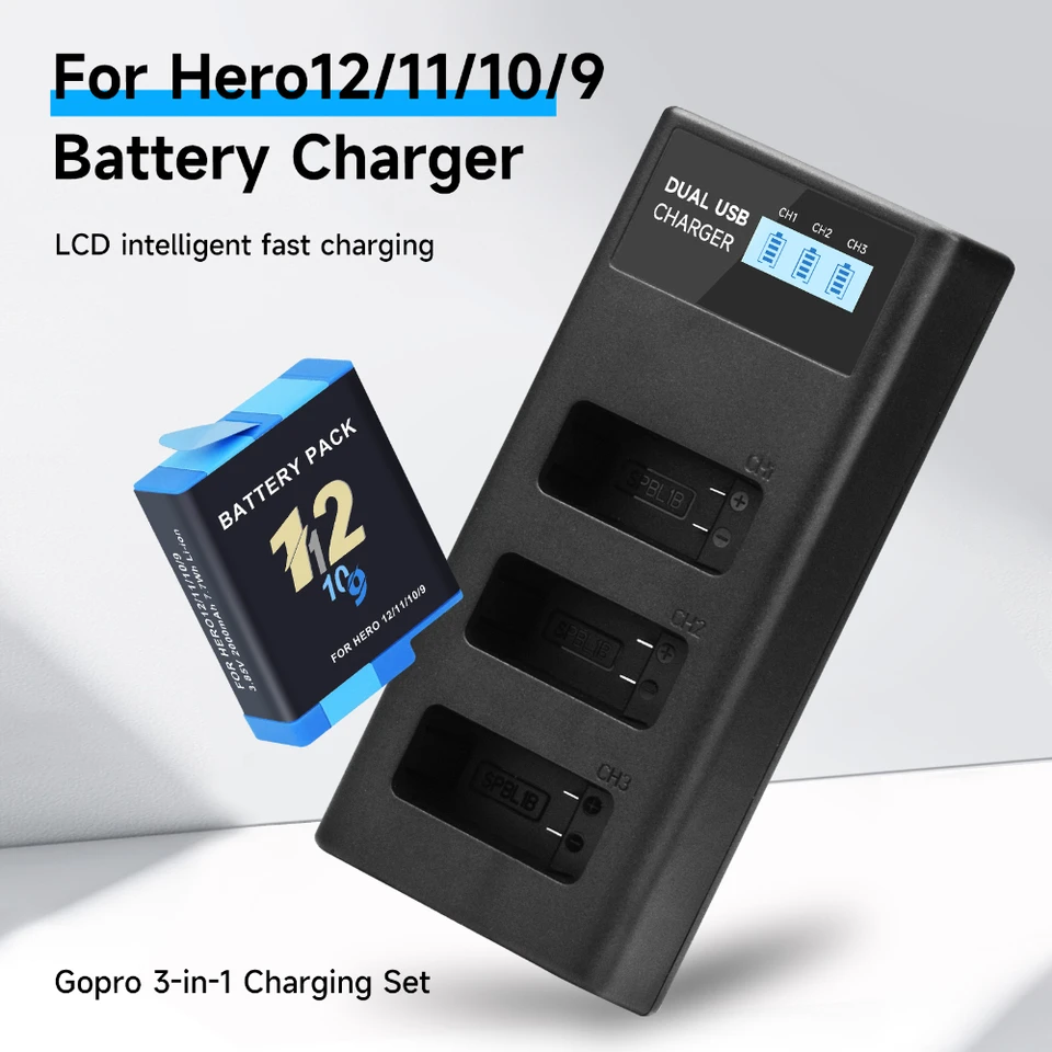 Batterie Gopro Hero 9 AFAITH Chargeur De Batteries à 3 Canaux Pour GoPro Hero 9 10 11 12 Noir, 3 Emplacements De Charge Station De Charge Chargeur De Batterie Rechargeable Pour GoPro Hero 9 10 11 12 Noir Avec Type-C+USB Boîtier Charge Rapide Hero 11 10 9 1. le mini chargeur à 3 emplacements peut charger simultanément jusqu'à 3 piles. 2.Chargez 3 batteries complètement à la fois en seulement 1,5 heures. patible avec la batterie d'origine GoPro Hero 11/10/9 Black. 4.3 lumières LED correspondant Telesin Box Charging Triple Para Gopro Hero 11/10/9 | Cuotas sin interés 【CHARGEMENT RAPIDE ET SÉCURISÉ】 Il ne faut qu'environ 2,5 heures pour charger complètement 3 batteries à la fois et sont livrés avec du cuivre de qualité supérieure pour assurer des performances et une stabilité élevées. Chargeur rapide USB - FirstPower - 3 canaux pour batterie GoPro Hero 11... 【INDICATEUR DE CHARGEUR LED】 L'indicateur lumineux LED intelligent empêche la batterie de se surcharger, le voyant rouge est en charge et le voyant vert complètement chargé. 【INTERFACE DE TYPE-C】 Le chargeur de type Flip avec boîte fermée est sûr et pratique, il dispose d'un port de type C pour charger les batteries avec le cordon de type C d'origine (câble de type C inclus dans l'emballage). Batterie li-ion rechargeable avec des cellules de qualité supérieure pour une durée de vie de la batterie plus longue sans effet de mémoire. 【CHARGEMENT RAPIDE À 3 FENTES】 Le boîtier de charge contient 3 cellules de batterie séparées pour la batterie, il permet de charger 3 batteries Hero5 simultanément, il peut être utilisé comme chargeur et comme boîtier de stockage de batterie.
