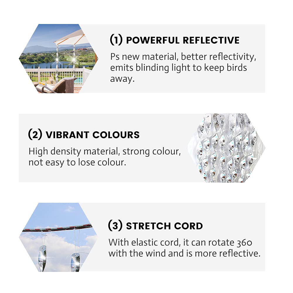 Il peut non seulement protéger votre propriété, mais aussi servir de décoration réfléchissante de moulin à vent, ce qui est un choix idéal pour les maisons et les jardins ! Effaroucheur Oiseaux Répulsif à Oiseaux 12 Pièces, Spirale Réfléchissante Anti Pigeons Pour Balcon Chaque personnel de défense des oiseaux est équipé d'une ligne brisée, aucune installation compliquée n'est requise et prête à l'emploi. Matériaux de qualité]Contient 12 repulsif pigeon de 30,5 cm, ces bâtons répulsifs d'oiseaux sont fabriquées en PP inoffensif,Il ne causera aucun dommage... Que le temps soit ensoleillé, pluvieux ou venteux, il peut jouer un rôle de répulsif pour les oiseaux ! INSTALLATION FACILE : Chaque Répulsifs Oiseaux Reflechissants en spirale est livré avec un cordon anti-rupture, qui peut être facilement accroché dans la position souhaitée sans qu'il soit nécessaire de l'attacher séparément. Matériau de haute qualité : Les spirale réfléchissante sont fabriqués dans un matériau plastique inoffensif,de haute résistance et durable, résistant aux intempéries,non toxiques et inoffensifs, s et effrayants pour les oiseaux,ces spirales en plastique effraient les oiseaux,le bracelet est fait d'un matériau inoffensif et n... MATÉRIAU DE QUALITÉ : Le Repousse-Oiseaux est fabriqué en PP, un nouveau matériau respectueux de l'environnement, qui résiste au vent et n'est pas facile à casser. En raison de la réflexion de la lumière naturelle pour stimuler la vue des oiseaux afin d'atteindre une répulsion physique à 100%, ce qui vous offre l'expérience la plus sûre de la protection de l'environnement. Il peut être utilisé pour repousser les oiseaux tout en ajoutant de l'élégance à votre jardin, balcon ou patio ! 12 pcs Spirales Repulsifs Oiseaux RéPulsif RéFléChissants Nous résoudrons le problème pour vous la première fois et vous pouvez acheter avec confiance. APPLICATION MULTIPLE : Le Répulsif à Oiseaux Argenté peut être accroché aux arbres fruitiers, aux avant-toits, aux potagers, aux toits et à toute autre zone qui doit être protégée contre les oiseaux.