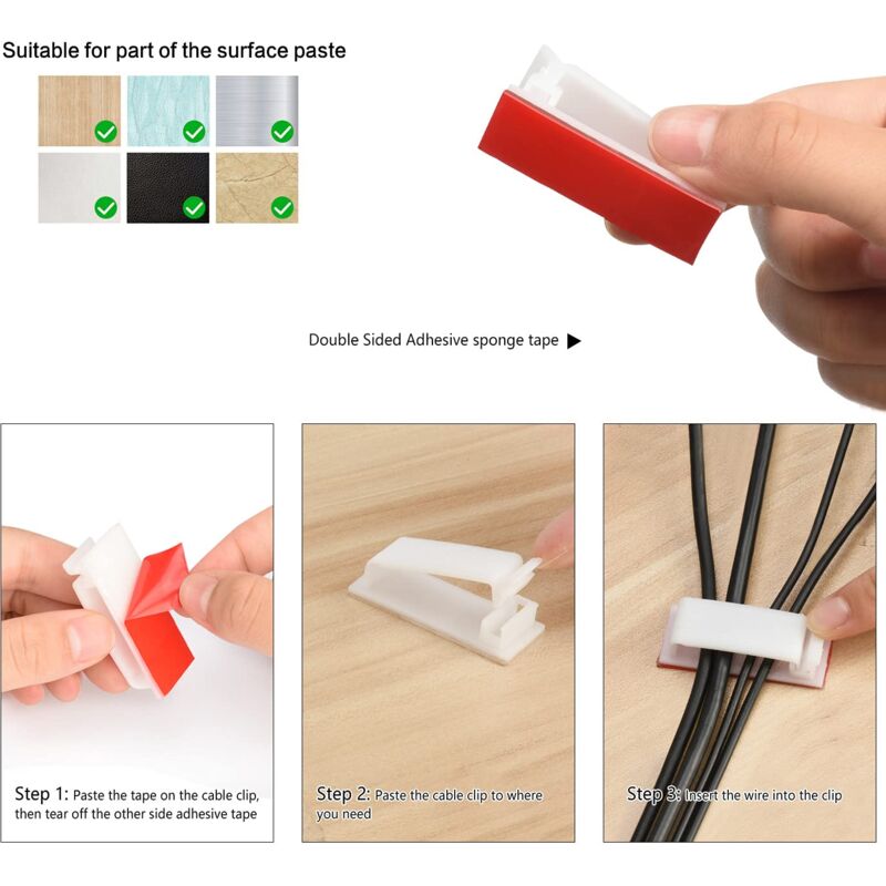 Pour une adhérence optimale, laissez-les reposer pendant 12 heures pour assurer une forte tenue lors de l'utilisation. Clip Cable Lntyq Clips Câble Organisateur Bureau, 12 Pièces Support De Câble Clips Pour Câbles USB écouteurs Shinfly Clip pour câble de bureau Noir et blanc, lot de 6 Nouveauté 8 clips organiseurs pour câbles rotatifs à 360° avec fermeture magnétique General Office 7 ,99€. Clips magnétiques pour câbles, rota... 100... Nombreuses utilisations : ① Bureau/salle de sport électronique : sécurisez les câbles USB, les cordons de souris et les fils de casque sur votre bureau ou station de jeu pour éviter les enchevêtrements et améliorer l'efficacité du travail. Des tests approfondis ont montré que cet adhésif conserve son adhérence et sa stabilité même dans des environnements à haute température ou humides. Organisateur de câbles - Blue - 4 pièces - Réutilisables - Portable... Chaque clip dispose de deux indentations, chaque indentation ayant un diamètre de 5 mm, ce qui les rend adaptés à la plupart des câbles de bureau Capable de contenir un câble de diamètre de 2 à 6 mm, câble d'éclairage inclus, câble HDMI Les clips ne se détachent pas facilement, même avec des tirages ou des mouvements répétés des câbles, assurant que votre gestion des câbles reste propre pendant l'utilisation. Cache Cable Bureau 70Pcs Clips Câbles Adhésifs Rangement De Câbles Fixation Auto Cache Cable Mural Lot de 6 --- Ce lot comprend 6 clips de câble, chacun mesurant 20 x 28 mm, environ la taille d'une pièce de monnaie de 2 livres. Le silicone est non seulement résistant à la chaleur, mais a également une bonne résistance à la déchirure, assurant que les clips ne s'endommagent pas facilement lors d'une utilisation fréquente.
