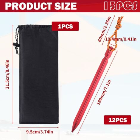 Lot de 12 Piquets de Tente,Sardines Camping en Alliage D'aluminium,18 Pointe pointue - Grâce à sa pointe pointue, vous pouvez facilement enfoncer la pointe piquet de tente profondément dans le sol, garantissant ainsi que votre tente/bâche reste bien en place en toutes circonstances. Piquets Pointe En Y Légers Lot De 12 Sardine Tente 18 Cm Avec Corde Réfléchissante,Piquet De Tente,Sardines Camping,Piquets Sardines Fixation Solide 7A04 Chacune de nos 10 pointes est livrée avec un sac de rangement pour un rangement et un transport faciles, réduisant ainsi votre poids. 12pcs Clous de Tente de Camping, Sardines de Camping , Piquets Tente... EN STOCK : Lot de 12 Sardine Tente 18 Cm avec Corde Réfléchissante,Piquet De Tente,Sardines Camping,Piquets De Tente,Sardines De Fixation,avec Pochette De Rangement,pour Bâche De Camping Bâche De Plage (Rouge), HD129C-0106442 pas cher. Livraison rapide partout en France. EN STOCK : Sardines tente pas cher. Grand choix, promos... Idéal pour le camping, la randonnée, les voyages et les voyages. La surface anodisée de la pointe est facile à nettoyer et sa couleur ne s'estompe pas avec le temps. Pointe en Y - Sa forme unique en « Y » à trois côtés la rend durable et résistante à la déformation. Conception ultra-légère - Fabriquée en alliage d'aluminium 7A04 de haute qualité, la pointe sardine tente est à la fois durable et plus légère que les autres pointes en aluminium. Cordon réfléchissant - Le sardines camping est doté d'un cordon réfléchissant intégré pour une meilleure visibilité lors de l'utilisation d'une lampe de poche et pour éviter de trébucher la nuit. Matériau : Alliage d'aluminium Couleur : Rouge Queue : 20× 14,6×2,5 cm Nom du produit et quantité : 12 piquets de tente Description du produit : Pointe en Y - Sa forme unique en « Y » à trois côtés la rend durable et résistante à la déformation.