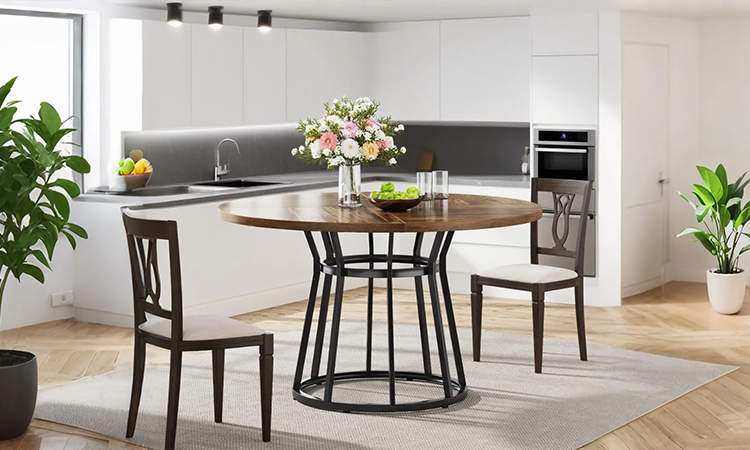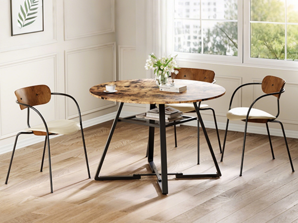 Cette étagère en treillis métallique est idéale pour y déposer vos sets de table, des serviettes, de petits pots de fleurs ou tout autre objet du quotidien. Convient pour toute maison, café, restaurant ou bureau. Table Cuisine Plateau Bois Base Métal MSFE Table De Salle à Manger Ronde 120 Cm, Table De Cuisine Rétro Pour Table Cuisine Salon Petit Espace Table de salle à manger ronde Rio de 36 po (L) en métal avec base piédestal - brun-noir. Plus de couleurs offertes. Idéal pour petits espaces. Table de salle à... Design Élégant et Intemporel:Alliez le charme naturel du bois à la modernité du métal pour une table au style intemporel. Design Élégant : Alliage parfait du bois chaleureux et du métal moderne pour s'adapter à tous les intérieurs. Utilisation : Idéale comme table de cuisine, table basse de salon, petit meuble d'appoint rond ou bureau occasionnel. Son design universel lui permet de s'adapter à toutes les pièces de la maison pour répondre à tous vos besoins. Parfaite pour les espaces restreints, elle offre une assise confortable pour jusqu'à 4 à 6 personnes sans occuper une surface excessive. Gain de Place Intelligent : Forme ronde de 120 cm optimisée pour les petits espaces, accueillant jusqu'à 6 personnes. Investissez dans une table conçue pour durer et supporter le quotidien de toute la famille. Multifonctionnelle : Table à manger, table de salon ou bureau : une seule table pour toutes vos pièces et usages. Choisissez une table de cuisine moderne et résistante pour accueillir vos repas en famille dans un espace élégant et chaleureux Étagère de Rangement Pratique:Découvrez un espace de rangement supplémentaire intégré directement sous le plateau. Utilisez-la comme table de cuisine pour les dîners en famille, dans le salon pour un repas convivial entre amis, ou même comme bureau spacieux dans votre espace de télétravail. Robustesse & Stabilité : Construction massive en bois et métal pour une durabilité et une stabilité à toute épreuve. Tribesigns table ronde pour 4 personnes, table de salon et cuisine