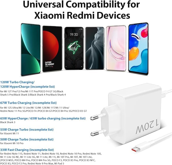 Boîtier en plastique ignifuge De plus, il dispose d’un système avancé de protection de la batterie, qui arrête automatiquement le flux de courant en cas de surcharge, prolongeant ainsi la durée de vie de la batterie. Notre chargeur a passé des tests de qualité rigoureux pour vous offrir une expérience de charge fiable et sûre. Attention : il est recommandé d'utiliser ce chargeur 120W et ce câble ensemble ! La commutation sur d'autres câbles ne permet pas d'atteindre une puissance de 120W pour une charge rapide Precautions: Veuillez vous assurer que votre appareil est compatible avec la charge Turbo de 120W avant utilisation Technologie de charge rapide En seulement 15 minutes, vous pouvez charger à 100% des appareils comme le Xiaomi Redmi Note 11 Pro qui prennent en charge la charge rapide. 1 x Câble USB vers USB-C 6A de 1m/3., 3ft Système de protection contre la surcharge, la surchauffe et l'incendie 120 Watt Xiaomi Charger 120W Chargeur Rapide USB Pour Xiaomi Redmi Note 14 Pro Avec 6A Câble Xiaomi 14 Il a été testé pour plus de 15 000 insertions et reste stable sans risque de déconnexion. 120W Chargeur Rapide avec Câble USB C 1 pour Redi Note 14 Pro 13Pro 12,Chargeur Turbo pour... Ne pas exposer le chargeur à des environnements humides ou à des températures extrêmes 【Adaptation intelligente】Ce chargeur 120w xiaomi est équipé d'un microprocesseur intelligent capable de détecter automatiquement les appareils connectés, d'évaluer leurs besoins en matière de charge et d'ajuster la tension pour offrir la meilleure vitesse de charge possible. Adapté pour des appareils nécessitant des vitesses de charge de 120W, 67W ou 33W Xiaomi Redmi Note 14 Pro Plus Kit för optimal laddning med 2m USB-C-kabel, Vit Le câble de charge rapide USB-C est fabriqué à partir de matériaux TPE de qualité supérieure et de connecteurs robustes, offrant une durabilité exceptionnelle et une flexibilité optimale. Sortie : 5,0 V ~ 3,0 A, 9,0 V ~ 3,0 A, 12 V ~ 3,0 A, 11 V ~ 6,0 A, 15 V ~ 3 A, 20 V ~ 3,25 A, 20 V ~ 6 A (120 W max) Utilisez uniquement dans des environnements avec une température ambiante normale pour éviter tout risque de surchauffe Dès qu'il commence à charger votre téléphone et que celui-ci est compatible avec la charge rapide de 120W, il affiche 120W MAX pour charger votre appareil à une vitesse optimale. Facile à transporter, il se glisse facilement dans un sac pour vous permettre de charger vos appareils Xiaomi où que vous soyez, assurant ainsi une performance optimale à tout moment. Testé pour plus de 15 000 insertions Câble USB-C 6A avec une durabilité exceptionnelle Idéal pour charger des appareils comme le Xiaomi 14T Pro, 13 Pro, POCO F4 GT, et bien d'autres Puissance de charge maximale : 120W 【Design compact et pratique】Le chargeur rapide 120W possède un design compact et léger, idéal pour une utilisation quotidienne à la maison, au bureau ou en voyage.
