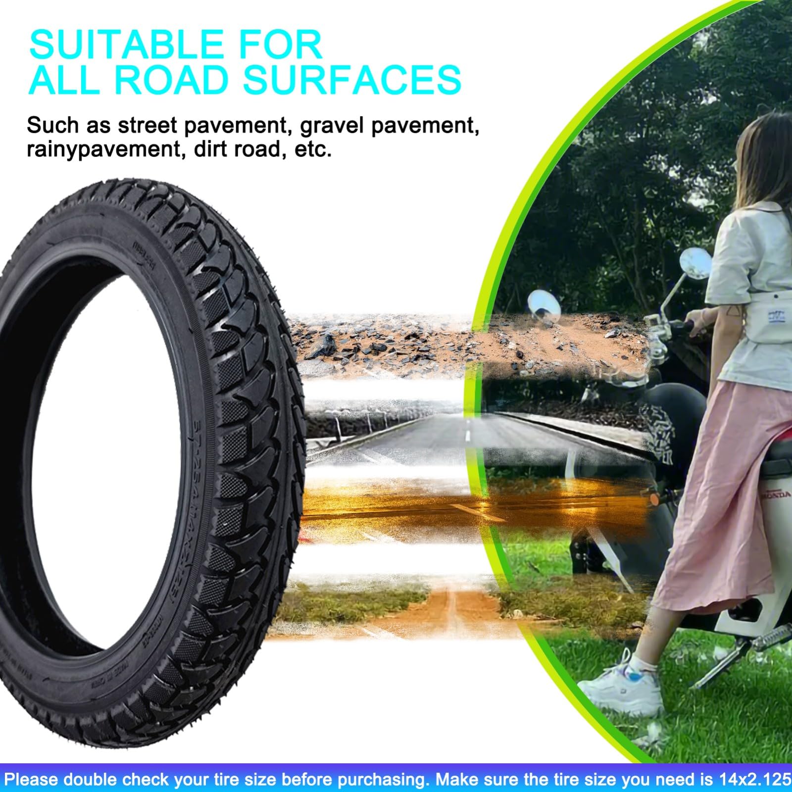 Pneu intérieur et extérieur de 14 pouces, 14x2.125(57-254), roue pneumatique 14x2.125, accessoires de vélo/vélo pour enfants for toute question concernant votre achat, n'hésitez pas à nous contacter. Pneu Draisienne 14 Pouces Ertro Pneu 14x2.125 Renforcé 14 2.125 PNEU TUBELESS Tubeless Convient Aux Pneu Vélo électrique 14x2.125 Ne vous inquiétez pas, profitez d'une expérience d'achat satisfaisante. Pneu 14x2.75 Bike Elétrica Original | Frete grátis Ce pneu de trottinette électrique de 14 pouces est fabriqué en caoutchouc, sa durabilité et sa résistance à l'usure. Il peut résister à l'épreuve du temps et... ◈ Offre une adhérence fiable , ◈ Type : Pneu tubeless Nous serons ravis de vous aider!, !, !, ^_^ ◈ Pneus adaptés : Vélos à assistance électrique Réglage flexible et fixation solide, très pratique. ◈ Pneus renforcés, résistants à l'usure, antidérapants ✅ Facile à installer et à retirer sans endommager votre trottinette.