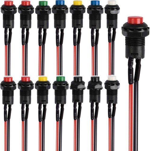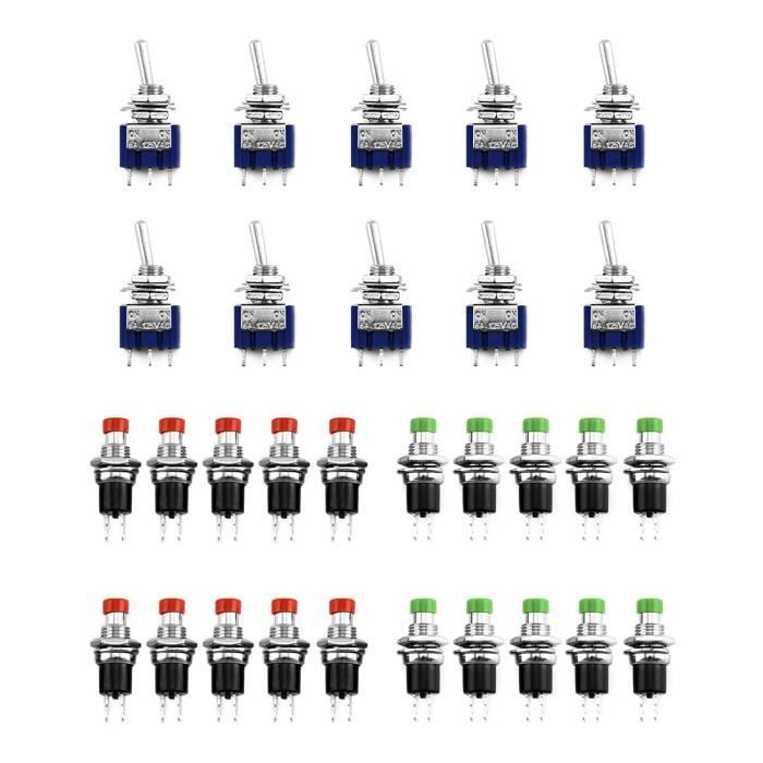 Jeu de 12 Boutons poussoir 16 mm, AC 250V / 3A 125V / 6A ON / OFF Bouton-poussoir miniature, Unipolaire à une direction, 125 mA @ 125 V c... Lot 14 Interrupteurs Momentanés 250V 3A 125V 6A Miniature Aexit 10Pcs Électricité AC250/125V 3A 3P Bouton Poussoir Momentané Interrupteur Bouton Poussoir Momentané ?type momentané, mécanisme de haute précision offre la conception et fonctionnement de courte durée longue durée de vie. We are shipping from China, the shipping time is about 10-30 days., SN:h7438j44086 Aexit 1 pièce AC125 V Accessoires 3 A 250 V 6 A Capuchon Rouge 6,7 mm Filetage mâle Montage sur panneau SPST Momentané Mini interrupteurs de sécurité... ?Nous fournissons également de nombreux autres interrupteur type pour satisfaire votre besoin, si vous avez un problème, veuillez contactez-nous. Pôle et jeter: SPST; Oeperation Genre: momentané; taille totale: 21 x 25mm/0., 83 x 1., (D*L) Type de contact: 1 NO NO; couleur principale: Noir,rouge; la valeur nominale: AC 250V 3A/125V 6A Nom du produit: Commutateur à bouton-poussoir; Pays de fabrication: Chine; Matière: plastique, métal