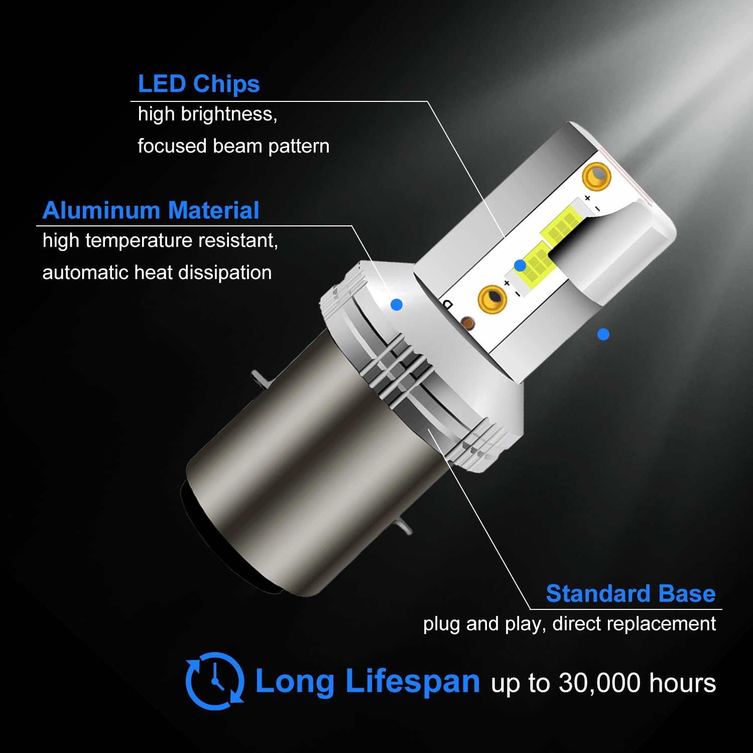 Ampoule Led Moto Ba20d S2 Ampoule Led BA20d 12V 12W Blanc - Pièces Electrique Sur La Bécanerie Phare Moto Puissant étanche Ip68 AMPOULE HALOGENE,Blanc froid-9W 64D-DC12V--Ampoule LED pour lustre en Luminosité inégalée : L'ampoule LED Ba20d S2 pour moto surpasse les halogènes standard en termes de luminosité, offrant une lumière blanche xénon perçante... Luminosité inégalée : L'ampoule LED Ba20d S2 pour moto surpasse les halogènes standard en termes de luminosité, offrant une lumière blanche xénon perçante de 6 500 K. L'éclairage assure une visibilité optimale, tandis que l'indice d'étanchéité IP68 protège de l'eau, de la neige, de la poussière, etc. Cette ampoule de phare Ba20d durable est conçue pour durer, avec une durée de vie de plus de 30 000 heures. Détails du produit Modèle d'ampoule : Ba20d/S2 Tension : 12 V CC Puissance : 22 W Température de couleur : 6 500 K Garantie : 1 an Contenu de l'emballage : 1 ampoule LED 1 boîte 1 gant blanc Il suffit de retirer l'ampoule d'origine et de connecter cette ampoule LED au faisceau de câbles de la moto. Soyez en sécurité et voyez clairement à chaque trajet. Dissipation thermique automatique : Fabriquée en aluminium de haute qualité, cette ampoule LED résiste aux températures élevées et assure une dissipation thermique automatique pour une luminosité maximale, réduisant ainsi les remplacements fréquents. Ba20d S2 12v 35/35w Ampoule 25% Blanc,130% Plus De Luminosité, Feux De Croisement/Feux De Route Halogène De Phare De Moto,2 Pièces
