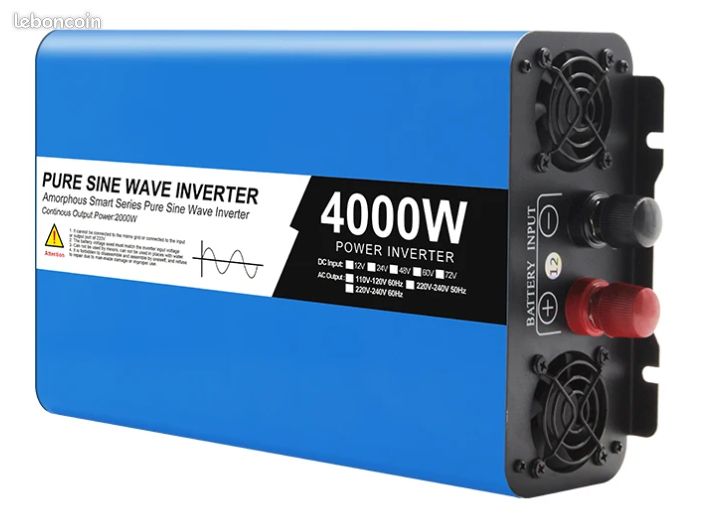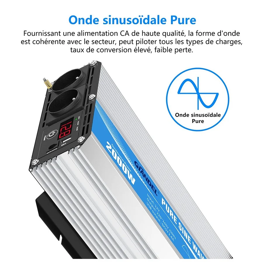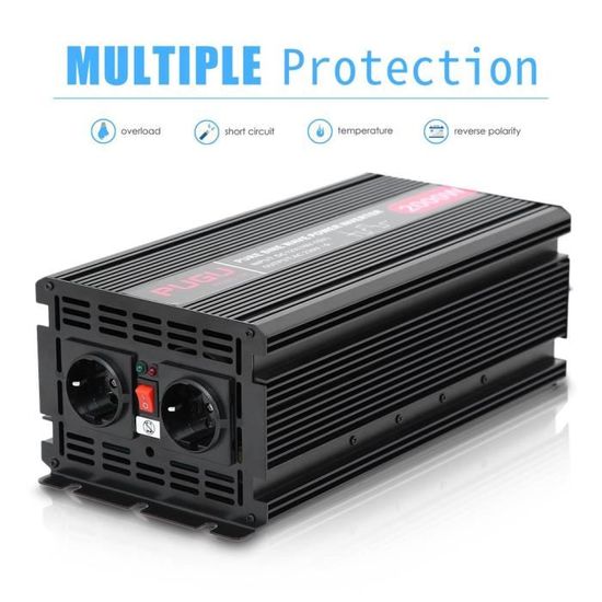 Elektron Convertisseur Pur-Sinus 12V / 230V : 2000W , POWER_INVERTER , Elektron Convertisseur 12V à 220V - Onduleur - 2000W - Onde pure sinus - Idéal camping et bateau - Auto équipement Van Aménagé 2000W Convertisseur 12V 220V-230V Pur Sinus Transformateur Pour Voiture Convertisseur Intelligent Priorité Secteur Ils ont une qualité de courant égale ou supérieure à celle d’une prise domestique. Lorsque le véhicule se déconnecte du réseau le convertisseur bascule à nouveau sur la batterie en quelques millisecondes pour continuer à alimenter le consommateur électrique. Kisae Abso IC122055i - Combiné Chargeur convertisseur - Pur Sinus - 12V... L'usage est destiné aux appareils électriques inductifs comme : (matériel de bricolage, pompes, moteurs, réfrigérateurs, compresseurs néons,…), aux appareils intégrant de l’électronique sensible à une qualité de courant parfaite comme : (réfrigérateurs, congélateurs, micro-onde, ordinateurs, machine à laver, TV, équipements médicaux, chargeurs smartphone et VAE …) et/ou aux appareils qui demandent une forte puissance au démarrage comme : (clim, cafetière expresso, sèche-cheveux, matériel de bricolage, perceuse, …). Protections electroniques contre : inversions de polarité, court-circuit, surchauffe. Pattes de fixation renforcées pour installation au sol ou murale. Compatible tout type de batteries y compris Lithium LiFePo4., Télécommande déportée incluse à partir du modèle 500W pour pilotage et arrêt du convertisseur à distance pour éviter de tirer sur la batterie même lorsqu’il n’y a pas d’appareil consommateur branché sur le convertisseur.