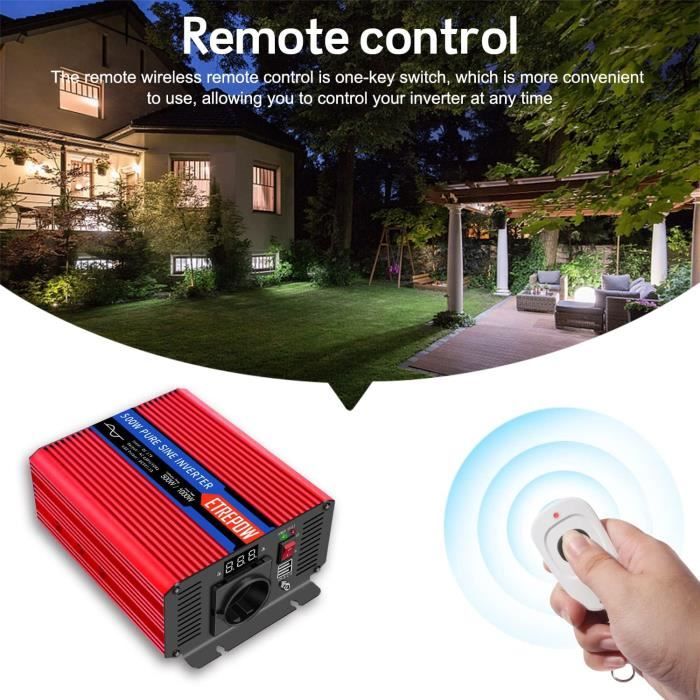 Description du produit ETREPOW Plus pratique pour votre vie Ce produit est certifié CE, ISO et MSDS et est un véritable onduleur à onde sinusoïdale pure. Dissipation thermique très efficace Le ventilateur intelligent ne se met en marche qu'à des températures supérieures à 45°C, ce qui permet de refroidir efficacement et de maintenir des niveaux sonores faibles. Il est recommandé d'équiper le convertisseur de tension 1000W12V d'une batterie de ≥100AH. 【Protection Multiple】Les transformateurs ETREPOW sont certifiés CE, ISO et RoHS et disposent d'une protection contre les surtensions, les sous-tensions et les surcharges. Il produit moins de bruit et offre une expérience ultra-silencieuse. Transformateur Onduleur Camping Car ETREPOW Convertisseur 12v 220v Pur Sinus 1000W Transformateur -2 Prise Transformateur 12v 220v un événement analyser jai soif transformer du courant 12v en 220v amazon capital L'onduleur à onde sinusoïdale pure est compatible avec la plupart des appareils électriques. Remarques: Une capacité insuffisante de la batterie peut empêcher l'utilisation d'équipements à forte puissance. 【Wide Application】Convertisseur 12V 220V 1000W Prise CA combinée avec un port USB pour répondre à différents besoins, peut fournir une alimentation stable pour vos différents appareils en même temps, adapté pour le panneau solaire, le camping, le voyage d'affaires, le voyage en caravane, le travail en plein air, la panne de courant et d'autres urgences. Convertisseur de tension sinusoïdale pure de 1000W, cet onduleur transforme le courant continu (DC) de 12V en courant alternatif (AC) de 220V à 240V à une fréquence de 50 Hz. Il est équipé d'un port USB DC 5V 2.1A et d'une prise AC pour une utilisation polyvalente Assurance qualité Approbations multiples, y compris plusieurs fonctions de protection modernes, créant un environnement sûr pour l'utilisation. Nous offrons une garantie de remplacement gratuite d'un an et un service client amical 24 heures sur 24 pour vous fournir un soutien complet. Équipé de deux ventilateurs intelligents à température contrôlée pour étendre la surface de dissipation de la chaleur et le refroidisseur. Convertisseur 12V 220V 3000W /6000W 230V Onde Sinusoïdale odifiée... 【Emballage et garantie】Convertisseur 12v 220v Pur Sinus 1000W, un manuel d'utilisation en français, un ensemble de câbles, une télécommande et un ensemble de fusibles de rechange. Si vous avez des questions sur l'utilisation ou les performances de l'appareil, n'hésitez pas à nous contacter, nous sommes heureux de vous aider. Il contribue à prolonger la durée de vie de l'onduleur.