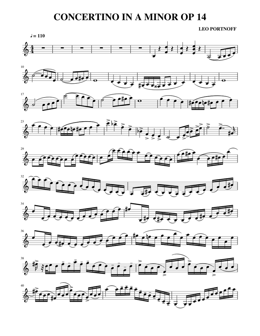 Portnoff: Voln Concertno n A mnor, Opus 14 - Voln Sheet Musc... Work Title, Violin Concertino ; Alternative. Title, Concertino in D major ; Composer, Küchler, Ferdinand ; Opus/Catalogue NumberOp./Cat. No. Op.14 ; Internal... CONCERTINO Op. 14 ( A Minor ) - Leo Portnoff Sheet Music For Violin Violin Concerto in A Minor RV 356 II. Largo by Antonio Vivaldi - Piano Solo, Violin Solo - Late Intermediate Digital Sheet Music | Sheet Music Plus