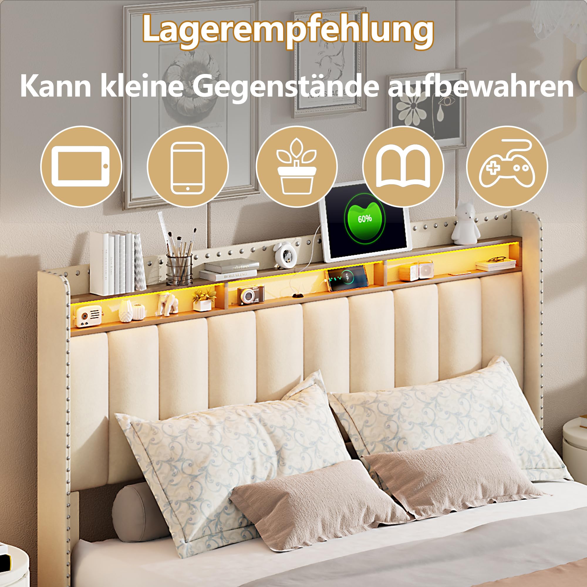 Lit Coffre 160x200 Lit Coffre 140x200 Cm Avec Sommier Et Coffre De Rangement, Lit Adulte Lit Matelas 160x200 Lit Adulte 140x200 Cm - Lit Coffre - Avec Rangement Hydraulique Et Sommier A Lattes Velours Gris Clair 99350306 Lit Coffre 140x200 cm, Tête de lit avec LED, lit Double avec sommier à Lattes,Velours,Beige · Plus d'information sur le produit vendu 261,99 EUR · Tous les modes... Tête de lit avec rangement : L'étagère supérieure ajoute une touche d'élégance et de praticité, permettant de ranger facilement votre téléphone, votre réveil et autres objets essentiels. Un espace de rangement dissimulé derrière la tête de lit offre un espace de rangement sécurisé et privé pour vos effets personnels. Bande LED : La tête de lit est équipée d'une bande lumineuse LED intégrée, réglable en couleur, en luminosité et en synchronisation musicale via une télécommande, pour s'adapter à tous les styles d'intérieur. Poids de l'utilisateur: 250kg Distance tête de lit : 25 cm Type de charge : 1 USB + 1 USB-C + 2 prises Matelas applicable (matelas non inclus) : 160/140 x 200 cm Ressort de boîte requis: aucun Installation requise: Oui Quantité du colis : 2., Prévoyez une livraison le jour même. Choisissez ce lit double pour créer une ambiance romantique et immersive dans votre chambre. Matériaux sélectionnés : Le cadre de lit est composé de lattes en bois massif robustes et d'une structure en métal, offrant une excellente capacité de charge et un confort exceptionnel. Le revêtement en velours beige est doux au toucher et convient à toutes les saisons. Découvrez la gamme de lits sur pour meubler toutes les chambres de la maison : lits 2 places, lits coffre, lits 1 place pour enfant à bas prix