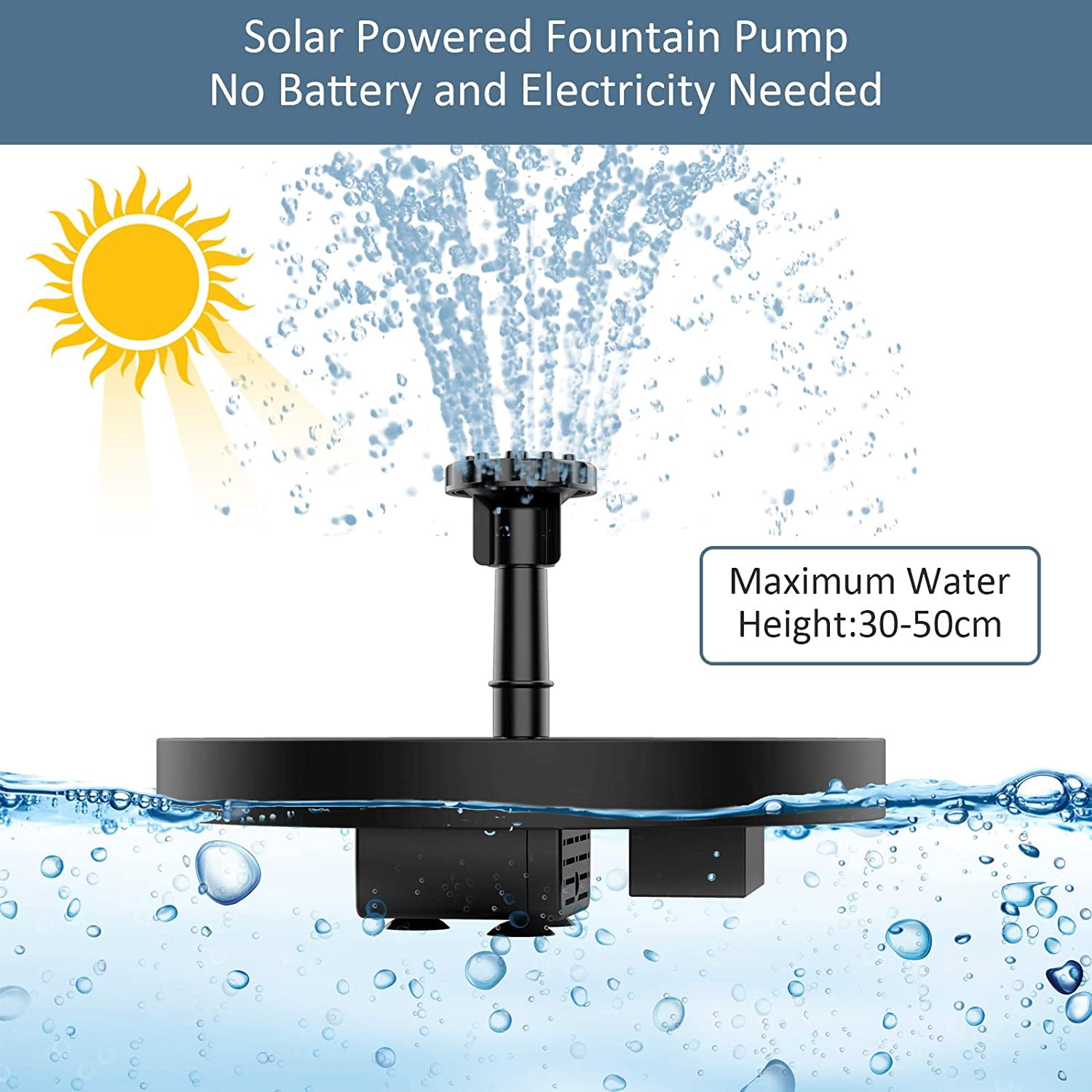 *Durabilité toutes saisons : conçue pour résister aux conditions extérieures, cette fontaine à eau solaire peut être laissée à l'extérieur toute l'année. Fontaine Solaire de Jardin Tfpro 3.5W - Pompe avec 6 Buses - Noir Contenu de l'emballage : 1 panneau solaire, 1 pompe à eau sans balais, 1 lot de 6 buses, 1 manuel de l'utilisateur (français non garanti). Pompe Aquarium Solaire Fontaine Solaire Extrieur Flottante 14W Pompe Bassin Solaire Avec Fontaine Solaire Jardin Il suffit de le fixer dans l'eau et d'exposer le panneau solaire à la lumière du soleil pour un fonctionnement automatique, vous garantit de passer moins de temps sur le montage et plus de temps à profiter de votre jardin. Conseils d'entretien : pour garantir une performance optimale, vérifiez régulièrement le niveau d'eau et gardez le panneau solaire propre pour une exposition maximale au soleil. Fontaine à eau solaire améliorée avec 7 buses différentes et 24... [Pour toutes les saisons] Conçue pour résister aux conditions extérieures, cette fontaine est adaptée pour les bains d'oiseaux, les aquariums et les petits étangs, ajoutant du charme et de la vitalité tout au long de l'année. *Matériau : plastique d'ingénierie. AISITIN Fontaine solaire d'extérieur à LED 3,5 W avec télécoande... Caractéristiques : * Nom du produit : fontaine solaire. Évitez de faire fonctionner la pompe sans eau pour éviter les dommages, et rafraîchissez l'eau fréquemment pour maintenir et éviter la stagnation. * Dimensions : 12 x 12 x 4,5 cm., Couleur : noir. Chaque buse offre un débit d'eau et une hauteur distincts, améliorant l'attrait visuel de votre espace extérieur. Fonctionnement à l'énergie solaire : profitez d'une expérience extérieure durable car cette fontaine fonctionne entièrement à l'énergie solaire, éliminant le besoin de prises électriques et réduisant les coûts énergétiques.