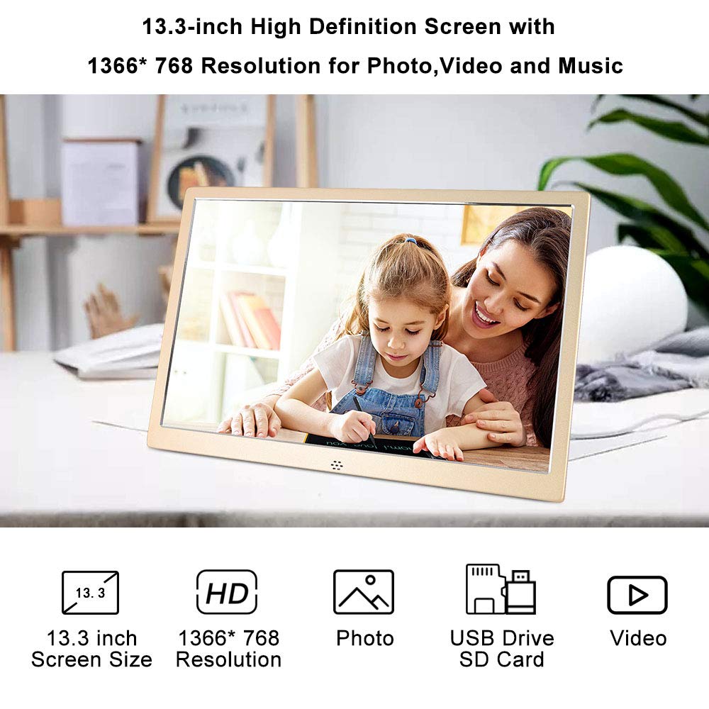 【Plusieurs fonctions】 Le cadre photo numérique dispose de plusieurs fonctions et peut être utilisé comme réveil ou calendrier. Musique de fond avec images. Caractéristiques du cadre photo : Panneau : Écran IPS 13,3., Rapport d'aspect : 16:9., Résolution : 1280 x 800., Emplacement pour disque dur : SD / SDHC / MMC / MS Port USB : Mini USB / USB Host 2., 0., Lecture automatique : Image/vidéo/MP3., Rapport photo réglable : Plein écran/taille d'origine/échelle Réglage de l'heure : Année/Mois/Jour/Heure/Minute. Des couleurs riches et vives montrent vos photos avec une clarté ultra brillante Prend en charge le format audio : MP3, MP2, MP1, WMA, OGG, APE, FLAC, AC3, RA, AAC, WAV. Grâce à son écran 16:10, vos photos prennent vie avec des couleurs éclatantes et des détails saisissants.Fonctionnalité polyvalente du Cadre photo numériqueCe cadre photo numérique prend en charge les cartes mémoire SD, MS, MMC et bien d'autres, ainsi que les formats audio tels que MPEG1, MPEG2, MPEG4 et RMVB Vous pouvez lire vos photos préférées en même temps avec de la musique de fond Écran IPS HD 1080p : le cadre photo IPS numérique incroyablement clair de 13,3 pouces vous offre une expérience visuelle haute résolution pour afficher des photos et des vidéos. Angle de vue complet de tous les côtés Vos photos sont propres et claires en les regardant sous différents angles. écran Ips Hd 1280x800 Cadre Photo Cadre Photo Numérique De 15.4 Pouces, écran IPS 1280 X 800, Calendrier, Fonction écran IPS 1280x800 Caractéristiques techniques : Écran LED 13,3 pouces, résolution 1280x800, format 16:10; Supporte les cartes mémoire SD, MS, MMC; Formats audio pris en charge... Le haut-parleur stéréo rend le son plus clair. 【Plug & Play】 Aucune configuration n'est nécessaire et aucun logiciel n'a besoin d'être installé. Vous pouvez également supprimer la photo directement dans le cadre, régler la vitesse du diaporama, sélectionner l'effet du diaporama, zoomer des photos, etc 【Support large】 Prise en charge des images JPEG, JPG, BMP et PNG ; prend en charge les fichiers vidéo MP4, 3GP, AVI, MPEG1 et MPEG2, prend en charge la musique MP3., Accepter SD, MMC, MS, Compact Flash ainsi que les lecteurs flash USB Cadre Photo Numérique 13.3 Pouces LED Haute Résolution Avec Insérez simplement une carte SD ou une clé USB et lisez vos photos. Emballage du produit : 1 support 1 bloc d'alimentation (1,5 m). Cadre photo numérique 13,3. Prend en charge le format vidéo : MPEG1, MPEG2, MPEG4 (Xvid,AVI), M- JPEG, RM, RMVB, MKV, MOV, M4v, MPG, FLV, PMP, AVI, VOB, DAT, MP4, 3GP.
