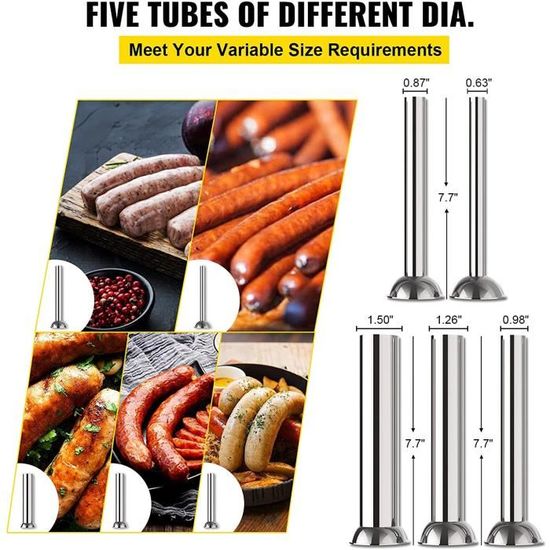 Applications larges Notre remplisseuse de saucisses est idéale pour les boucheries, les chaînes de restaurants et les usines de transformation alimentaire. Accessoires complets : Ce remplisseur de saucisses vertical comprend quatre tubes de remplissage SUS 304 : diamètre 16 (14) mm, 22 (20) mm, 32 (30) mm, 38(36) mm / ⌀0,63 (0,55) po, ⌀0,87 (0,79) po, ⌀1,26 (1,18) po et ⌀1,50 (1,42) po. Cette machine à saucisses électrique utilise un moteur puissant de 260 W, ce qui permet de gagner du temps et d'économiser de la main d'œuvre. Saucisses serrées avec moins de bulles d'air et vitesse réglable. 15 L, idéale pour les supermarchés, les boucheries, les restaurants, etc 1 x Manuel d'utilisation Facile à nettoyer Toutes les pièces en contact avec les aliments de ce poussoir à saucisses vertical passent au lave-vaisselle et sont faciles à démonter. Grande capacité : Le poussoir à viande est doté d'un barillet inclinable pouvant contenir jusqu'à 15 L de viande. Poussoir à saucisses électrique Vous avez toujours du mal à remplir vos aliments lentement et à obtenir des résultats irréguliers ? Essayez ce poussoir électrique de qualité professionnelle et gagnez en efficacité ! Transformez votre gibier en repas à partager immédiatement après la chasse grâce à des boyaux frais et rapides. Vevor Acier Inoxydable VEVOR Poussoir à Saucisses Électrique 15 L, Machine à Saucisses Machine à Tuber Facile à nettoyer : Notre remplisseuse à saucisses est dotée de pièces amovibles comme le cylindre, le piston et les tubes, compatibles lave-vaisselle. VEVOR Poussoir à Saucisses Électrique 15 L 260 W Machine à Saucisses... Résultats compacts : Notre appareil à saucisses est équipé d'un moteur de 200 W pour une performance puissante et durable, idéal pour un usage professionnel. Idéal pour la préparation par lots en cuisine professionnelle, il réduit les remplissages. Dimensions du produit : 15,55 x 11,61 x 33,46 pouces / 395 x 295 x 850 mm Appareil à saucisses - Comparez les et achetez sur Toutes les pièces en contact avec les aliments répondent aux normes de qualité alimentaire, avec des intérieurs lisses et sans bavures Caractéristiques principales Panneaux latéraux en acier inoxydable Construction monobloc en acier inoxydable épais. Utilisation facile : Ce poussoir à saucisses électrique est doté d'un contrôle de vitesse progressif pour s'adapter à différentes viandes. La plaque de pression avec trous d'aération améliore l'efficacité et forme des saucisses fermes et sans bulles d'air Convient pour la maison, le travail, la chasse ou la préparation d'aliments frais pour animaux Hauteur de la trémie : 15,83 po / 402 mm Type d'alimentation : électrique, Capacité : 33 lb/15 L 1 x bague d'étanchéité Ne se déforme pas, ne rouille pas et reste comme neuf même après une utilisation prolongée. Sa surface en acier inoxydable est facile à nettoyer.