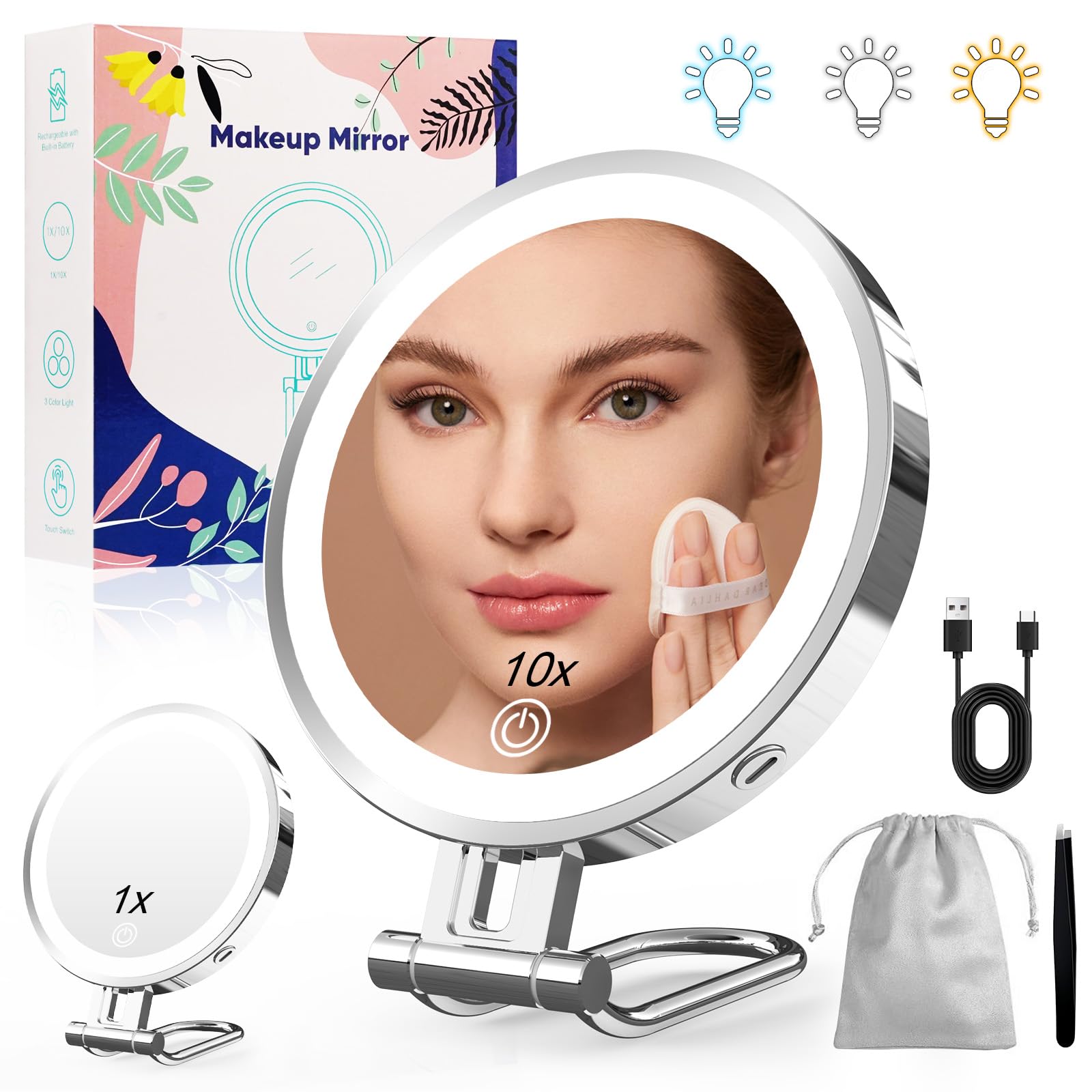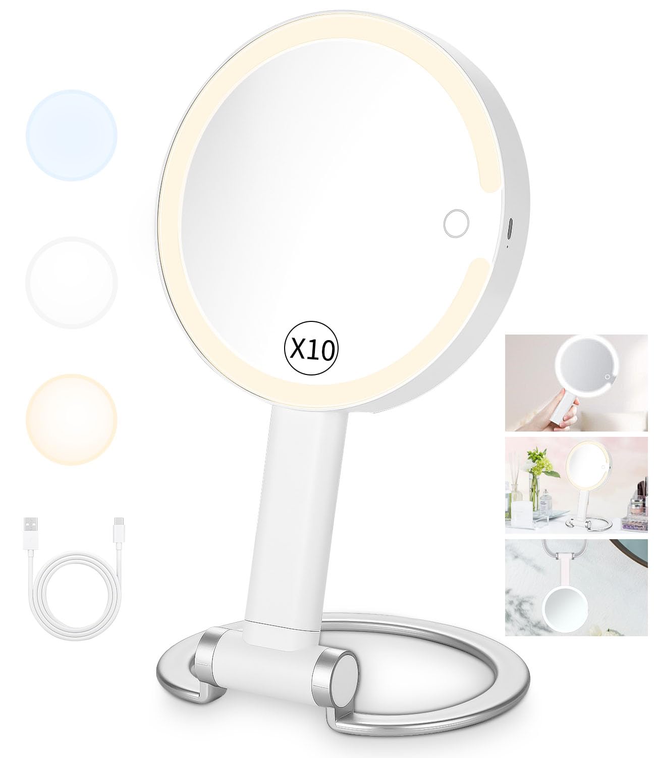 Fabriqué avec des matériaux de qualité, il convient à des occasions telles que la Saint-Valentin, Noël, les anniversaires. Miroir grossissant double face 1x10x avec lumière, 3 modes d Sinon, l'image sera floue, à l'envers et étourdie. Miroir Grossissant Eclairant Miroir De Maquillage - Hollywood - Lumineux - 15 LED - 3 Couleurs Réglables - Charge USB - Electroménager Petit Miroir Led Le grossissement 10x facilite diverses manipulations de maquillage délicat comme la pose de lentilles de contact, l'épilation des sourcils, l'application de mascara, etc., Fonctions : 1., Appuyez brièvement pour basculer entre blanc, blanc chaud et couleur chaude ; appuyez longuement pour régler la luminosité., 2., Réglages intelligents : La fonction mémoire restaure le dernier réglage sans éteindre l'appareil., 3., Minuterie : S'éteint automatiquement après 20 minutes d'inactivité., 4., État de charge : En charge : Rouge ; Complètement chargé : Bleu., 5., 1X/10X : La loupe grossissante 10x est recommandée pour une utilisation à une distance inférieure à 10 cm. Grossissement 1X/10X Double Face - Ce miroir maquillage a deux côtés, grossissant 10X et 1X. LaBlanc - Miroir grossissant avec lumière, 20x/1x, Double Face, Miroir... C’est également un article essentiel au quotidien qui peut être utilisé aussi bien par les hommes que par les femmes. Batterie au Lithium 1500 mAh - Batterie au lithium intégrée de très grande capacité, qui peut être utilisée dans des conditions de faible luminosité jusqu'à 5., 5 heures lorsqu'elle est complètement chargée. Miroir De Maquillage Mural, Miroir Grossissant 3X, Miroir De Maquillage... En cliquant sur le bouton tactile, vous pouvez allumer et éteindre la lumière et changer les 3 couleurs de la lumière, en appuyant longuement sur l'interrupteur, vous pouvez régler la luminosité de la lumière en continu, et en double-clic, vous pouvez éteindre rapidement le courant. 3 Modes d'éclairage Réglables -Ce miroir maquillage disposez de 3 couleurs de lumière : lumière naturelle, lumière blanche et lumière jaune. Miroir Portable Multifonctionnel - En plus d'être utilisé à la maison, grâce au support pliable du miroir, il peut être facilement placé dans une valise ou un sac à main. Ce miroir de maquillage lumineux dispose d'un côté d'un miroir plat HD 1x et de l'autre côté d'un superbe grossissement 10x. Il s'agit d'un phénomène physique normal du miroir grossissant et ne constitue pas un problème avec le produit.