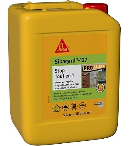 Mode d'emploi : Agitez avant usage. Élimine durablement mousses, algues, lichens et traces vertes Anti Mousse Très Concentré DEMOUSS’+14-1Litre = 15 Litres En Curatif Prêt à L'emploi Soit Entre 60 Et 75m² Traités - 1Litre = 30 Litres En Préventif Soit Entre 120 Et 150m² Sikagard 127 Fongicide curatif prêt à l'emploi pour toitures, murs et terrasse... Formule ultra concentrée : 1L = jusqu’à 150 m² selon usage Description du produit DEMOUSS’+14 – Nettoyant ultra concentré pour surfaces extérieures 1 litre de DEMOUSS’+14 permet de préparer : 15 litres de solution prête à l’emploi en curatif, soit entre 60 et 75 m² traités Redonnez vie à vos extérieurs avec DEMOUSS’+14 ! ✅ Action puissante et durable : Nettoie efficacement mousses, algues, traces vertes, lichens et micro-organismes sur toitures, façades, terrasses, murets et dallages. Compatible avec tuiles, ardoises, enduits, pierres naturelles, etc. Efficace contre les mousses, lichens, microalgues et moisissures, ce traitement protège durablement vos surfaces tout en respectant les matériaux et leur teinte d’origine. Diluez, appliquez au pulvérisateur, laissez agir., Ne pas rincer. Application simple au pulvérisateur, sans rinçage. Caractéristiques du produit ; Contenance, 5 L ; Rendement du produit, Traitement curatif : 1L = 30 à 60m² / traitement préventif : 1L = 150 m² ; Usage, Extérieur Fabrication française, qualité professionnelle Diluez dans l’eau, appliquez au pulvérisateur sur surface sèche ou légèrement humide, laissez agir., Ne pas rincer. Sa formule sans acide et sans solvant convient parfaitement aux surfaces fragiles. Liquide de refroidissement K11 -25° prêt à l'emploi 60 Litres