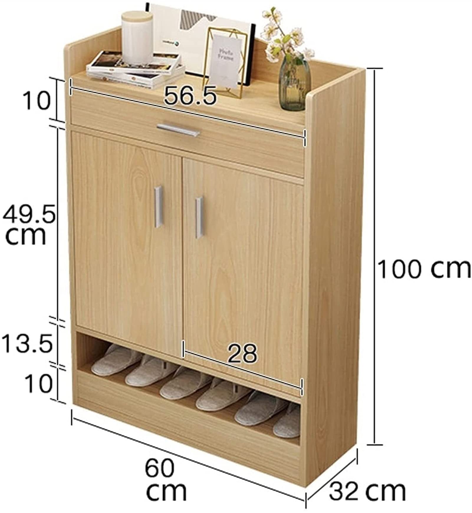 étagère Chaussures Compacte 100 Cm Meuble Rangement Chaussure 15 Paires - Pour Entree Couloir - 60x17x180 Armoire A Chaussure NOUVEAU MEUBLE RANGEMENT, MODERNE Armoire à chaussures Noir 60x34x45 cm Meuble à chaussures moderne et fin pour l'entrée - Étagère de rangement en bois à 4 niveaux avec portes, organiseur de couloir étroit, rangement élégant... Gain de place optimisé : Avec ses dimensions malines (108,5 × 24 × 100 cm), cette étagère se faufile même dans les entrées étroites ou les petits couloirs. Même chargé, pas de risque qu’il tremblote ou se déforme – du solide qui dure. Polyvalent et pratique : Que ce soit dans l’entrée, le couloir ou même la chambre, ce meuble s’adapte à tous vos besoins. Attention !, 1., En raison de l'éclairage ou de l'affichage, la couleur du produit réel peut différer légèrement de celle de la photo., 2., Les mesures étant prises à la main, des erreurs raisonnables peuvent survenir., 3., En raison de la nature aléatoire du grain du bois, celui-ci peut varier d'une armoire à l'autre., Points forts 1., Simple et polyvalent 2., Espaces de rangement polyvalents 3., Facilité d'utilisation 4., Meuble à chaussures en bois 5., Robuste et durable 6., Accessoires dorés 7., Facile à assembler Caractéristiques Dimensions hors tout (cm) : 108,5 L x 24 l x 100 H Charge du produit : 40 kg L x l : 23 kg Matériau : MDF Couleur : Couleur bois Brillant : Non Autres outils requis : Oui Nombre de colis : 1 Origine : RPC Fini les chaussures qui traînent, bonjour l’organisation sans effort ! Un vrai plus pour décorer votre intérieur avec classe. Montage simplissime : Les pièces sont bien étiquetées et les instructions hyper claires. Parfait pour un usage quotidien, il ne vacille pas et ne se déforme pas. UTILISATION POLYVALENTE – Que ce soit dans le couloir, l'entrée ou la chambre, ce meuble à chaussures offre un espace de rangement pratique et embellit votre intérieur