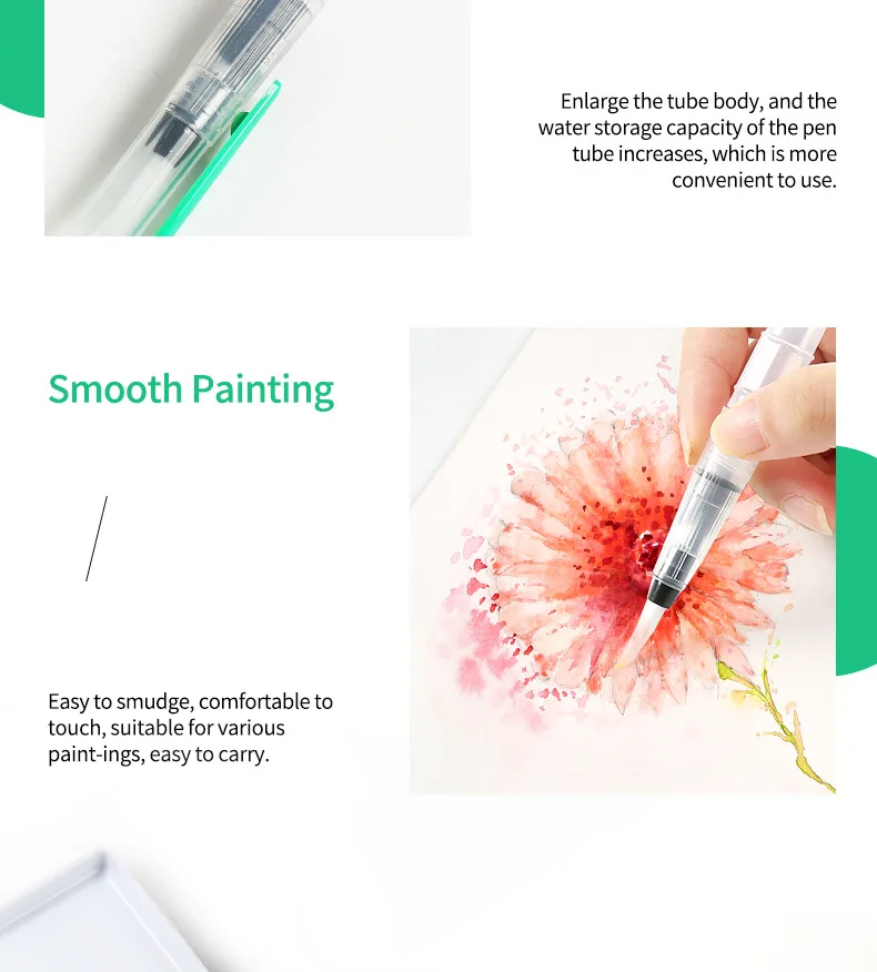 Pinceaux Nylon Qualité Fournitures Artistiques Yincen Yingcen 15 Pièces Pinceau à Eau Aquarelle Ensemble CréAtivité Stylos Pinceau Avec Réservoir Eau Pour Dessin Peinture Ensemble de stylos pinceaux à eau, 6 pièces, peinture sur BROSSE POUR PEINDREstyle3--Marqueurs rechargeables, pinceaux pour... Note: réflexion de lumière et différents écrans peuvent causer la couleur de l'article dans un peu différente de la vraie chose. L'erreur de mesure permis est de +/- 1-3 cm. ergonomique : Faciles à remplir et à nettoyer, ces stylos fonctionnent avec les supports à base d'eau. Tebbomp Couleur : RoseMatériau : plastiqueContenu du colis :6 pinceaux rechargeables (tube de stylo vide, sans encre)Seul le paquet ci-dessus, les autres produits ne sont pas inclus. Après utilisation, un rinçage sous l'eau les prépare pour votre prochaine création. Pinceaux polyvalents : Dotés de pointes plates et pointues disponibles en plusieurs tailles, ces stylos sont conçus pour une grande flexibilité. Idéal pour diverses formes d'art : des aquarelles délicates aux gouaches audacieuses et à la calligraphie complexe, ces stylos pinceaux aquarelle rechargeables sont parfaits pour les professionnels, les amateurs et les débutants, améliorant tout projet artistique. Lot de 6 stylos aquarelle rechargeables Têtes de : 3 plates (S/M/L) – 3 pointes (S/M/L) – Chaque stylo mesure 155 mm Il suffit de dévisser le du stylo pour outer de l'encre et de l'eau (pas plus des 2/3 du tube du stylo), et de presser doucement le du pinceau pour contrôler facilement le débit d'eau