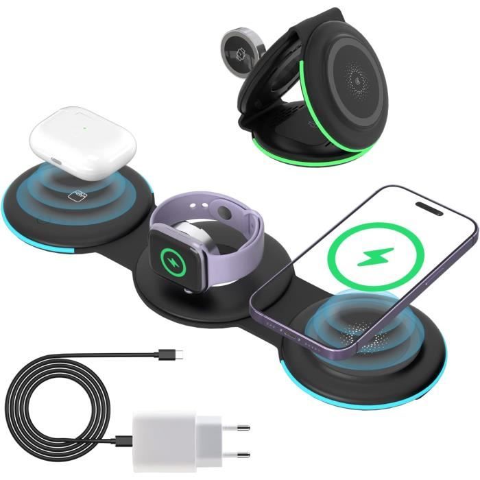 En résumé, ce chargeur sans fil magnétique est un accessoire indispensable : puissance de 15W, alignement automatique, sécurité intégrée, design élégant et portable, double connectique pratique et assistance complète. Grâce à la technologie, il s’aligne automatiquement sur vos appareils compatibles, garantissant une connexion stable et une charge efficace. La puissance de 15W permet un rechargement plus rapide qu’un chargeur classique, tout en restant sûr pour vos batteries. Enfin, ce produit est accompagné d’une garantie de 18 mois et d’un support client réactif, accessible 24 heures sur 24 et 7 jours sur 7., En cas de question, une équipe dédiée s’engage à vous répondre sous 24 heures. En soirée ou dans une chambre sombre, vous n’aurez plus besoin de chercher un câble : posez simplement votre smartphone, et la charge démarre immédiatement. Chargeur Induction, 15W Qi Certifié Wireless Charge Pour Téléphones... Son épaisseur de 0,23 pouce et son câble assurent portabilité et commodité au quotidien, à la maison comme en voyage. Pratique et polyvalent, il intègre deux types de connecteurs (USB-C et USB-A), rendant le chargeur induction compatible avec la majorité des adaptateurs muraux déjà disponibles. Ce chargeur sans fil magnétique 15W a été spécialement conçu pour offrir une recharge rapide, sécurisée et pratique au quotidien. Pad Charge Magnétique USB-C USB-A Chargeur à Induction Sans Fil 3 En 1 Avec Veilleuse (15 W) USB-C – Blanc – Pour Smartphones, Montres, écouteurs – Plus D'ordre Et De Confort - High-tech Et Tendances Chargeur Induction Ugreen Chargeur sans Fil Chargeur Magnétique Induction 15W Chargeur Rapide... Conçu en métal résistant aux rayures et empreintes, ce chargeur affiche un design élégant et durable. Rechargez tout en regardant vos vidéos, jouant ou travaillant sans interruption. Conçu pour s’aligner automatiquement grâce à la technologie, il assure une charge stable et efficace pour vos appareils compatibles tout en évitant les branchements compliqués. Équipé de deux ports (PD et USB-A), ce chargeur induction s’adapte à vos adaptateurs existants. Chargeur Sans Fil, Chargeur Induction 15W Charging Pad Pour Iphone 14 Système de sécurité intégré contre surchauffe, surtension et courts-circuits. La surface résistante aux rayures et empreintes garde son aspect neuf au fil du temps. Avec une finesse de seulement 0,23 pouce et un câble intégré de 1,5 m, ce chargeur est à la fois discret, compact et facile à transporter. Son design métallique haut de gamme combine élégance et durabilité.