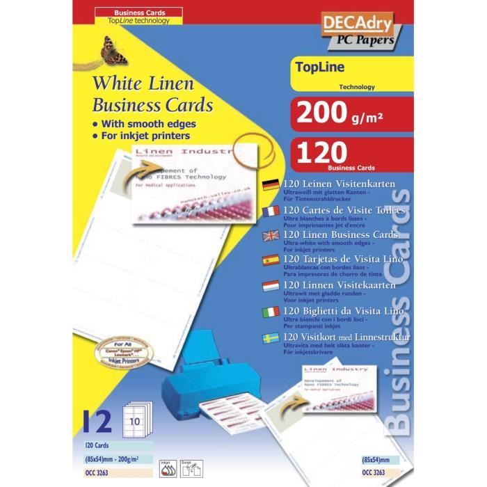 Pochettes Cartes Visite 54x85mm Pochette Decadry 150 Cartes De Pochette 150 cartes de visite blanches MicroLine - 200g 85 x 54 mm Cartes De Visite Papier épais Professionnel Carte Visite Pochette 150 Cartes De Visite Decadry - 54x85mm Cartons Visite 200g 85x54 Mm La qualité ultra-blanche des cartes vous assure un excellent rendu de vos impressions. Pour imprimantes à jet d'encre, laser et photocopieurs. Consultez votre panier pour le montant total Stock Bureau - DECADRY Pochette 150 cartes de visite blanches TopLine...