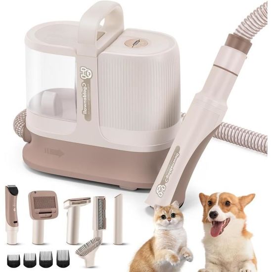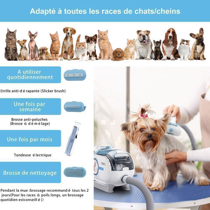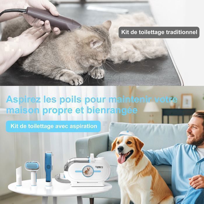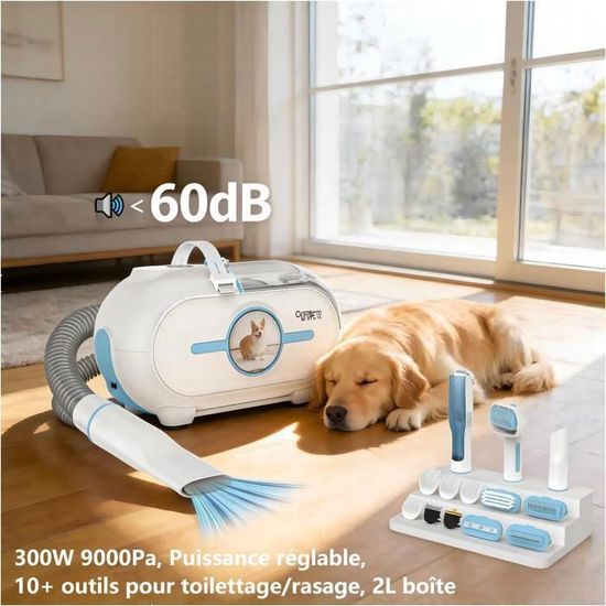 Il permet de couper,brosser,démêler,sécher et nettoyer directement à la maison. For chiens chats chevaux Kit de toilettage for animaux de compagnie Kit Que ce soit dans la salle de bain, sur le balcon ou en terrasse, vous offrez à votre animal une expérience confortable. Kit Toilettage 7 En 1 Chien Chat Tondeuse Chien Avec Aspirateur, 15000 Pa Aspirateur Poil De Chien Chat Appareil Toilettage Chien Chat Silencieux 1 3 Réglage températur 2 Buse double commande 3 Séchage silencieux 4 Réglage température 5 Tuyau de 1,5 m Un seul appareil pour un toilettage complet,idéal pour les foyers avec plusieurs animaux et les chiens ou chats sensibles qui n’aiment pas les salons. Machine de Toilettage 7-en-1 pour Chiens & Chats - Aspirateur, Tondeuse & Soin Complet Transformez votre maison en salon de toilettage professionnel avec notre machine de toilettage multifonction One PETS-TOP. Un seul appareil pour aspirer les poils, tondre, brosser et tailler les griffes, le tout avec puissance, efficacité et confort. 🐶 Témoignage de Bounty : « Plus besoin d... Les brosses et embouts amovibles se nettoient facilement, offrant une hygiène optimale. hien Séchage sécurisé avec contrôle de température:Équipé de trois réglages (45°C, 50°C, 60°C) et de deux buses, le sèche-cheveux intégré permet un séchage rapide et sûr après le bain. Tondeuse pour Chien Tondeuse Chien Poil Electrique sans Fil Kit... Conception à faible bruit:Le M1 Pro fonctionne à ≤62dB, réduisant l’anxiété des animaux sensibles. Puissante aspiration 11 000Pa et grand réservoir 2,5L: Grâce à sa force aspirateur poil de chien,l’appareil capture jusqu’à 99% des poils lâches et évite leur dispersion. Le tuyau flexible de 1,5m et le câble de 2,5m assurent une liberté totale de mouvement. 1 Brosse toilettage 2 Peigne démêloir 3 Buse plate & buse ronde 4 Buse aspiration démélante 5 Faible volume Coupe précise et accessoires faciles à entretenir : La tondeuse est livrée avec quatre sabots (3/6/9/12mm) pour garantir une coupe uniforme et sécurisée.