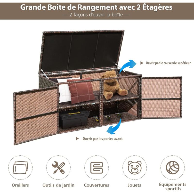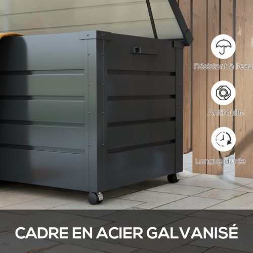 COUVERCLE FACILE À OUVRIR ET VERROUILLABLE : Le coffre de balcon s’ouvre facilement avec un piston hydraulique et son couvercle verrouillable garde vos objets en sécurité Coffre 311 Litres Roues Banc De Rangement Extérieur 151L,VEVOR Coffre Jardin En Rotin Synthetique Capacite 181 4 Kg Coussin Poignee Laterale Siege Exterieur 96594839 Coffre De Jardin Etanche Package includes: 1 x Coffre de rangement extérieur 1 x Manuel d'instructions PRIMEYARD® Coffre de jardin 162x84x72 cm coffre de rangement extérieur... Le couvercle verrouillable par clé garde vos affaires en sécurité dans le coffre de rangement COFFRE DE RANGEMENT POUR L'EXTÉRIEUR : Ce coffre de rangement extérieur de 311 L accueille facilement outils de jardin, coussins ou jeux, gardant tout organisé et à portée de main Outsunny Banc de jardin 2 places avec coussin d'assise rembourré - 2 en... Ce coffre de rangement extérieur offre 311 litres d’espace pour vos outils et coussins Protégez vos outils et accessoires de jardin contre les intempéries avec ce coffre de rangement Outsunny. MOBILITÉ AISÉE : Déplacez ce coffre de rangement grâce à ses quatre roues, dont deux avec freins, et ses poignées latérales pour un transport sans effort Coffre De Rangement Exterieur - Outsunny - XXL 311L Verrouillable Verin A Gaz Acier Galvanise 120x62x62cm Gris Fonce 49237060 Sa capacité de 311 litres accueille coussins, jouets ou équipements, tandis que l’acier galvanisé assure robustesse et durabilité. STRUCTURE EN ACIER GALVANISÉ : Le coffre de jardin en acier galvanisé protège vos affaires de la pluie, du vent et du soleil, assurant une durabilité optimale en extérieur