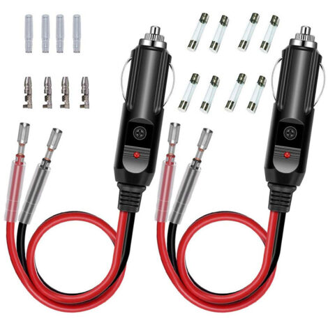 Câblage robuste 16 AWG et intensité nominale 15 A - Les conducteurs en cuivre 16 AWG et le boîtier en bakélite résistant à la chaleur garantissent une résistance minimale et jusqu'à 15 A de courant continu. Ce que vous obtenez]: 2 Pcs Fil Allume Cigare, 2 Pcs fusible 10A, 2 Pcs fusible 15A, 4 gaines transparentes. Stable solide et sécurisé, durable longtemps... Les allume cigare 12v manchons isolants recouvrent en toute sécurité les contacts ouverts et empêchent les étincelles. Grâce à la prise universelle de 20 mm, le kit de prise allume-cigare de voiture convient aussi bien aux voitures, camions, camping-cars, bateaux, motos ou tracteurs. Prise Allume-cigare Universelle Voiture Adaptateur Mâle Pour Allume-cigare 2 Pcs Prise Allume Cigare 12v-24v 10/15A Fusible Avec 16 AWG Câble D'alimentation Et Led Pour Camion Camping Car Voiture Tracteur (22CM Kit Prises Allume-cigare Voiture Connecteur rapide pour une installation DIY sans outils - connectez le fil rouge au positif, le fil noir à la terre, branchez le connecteur sur la prise allume-cigare et mettez l'appareil sous tension. Contenu de la livraison 2 × prises allume-cigare (30 cm, 16 AWG) 4 fusibles en verre 10 A 4 fusibles en verre 15 A 4 × connecteurs rapides 4 × manchons de bornes isolés Que ce soit au quotidien, en voyage ou pour bricoler, ce kit de prise allume-cigare fournit une énergie stable exactement là où elle est nécessaire. L'isolation épaisse résiste à la flexion, à l'abrasion et à l'exposition aux flammes ; conçu pour une utilisation intensive dans les systèmes électriques des véhicules et les environnements de camping en plein air. Universel de la voiture au bateau - L'ensemble de rallonges de prise d'accessoires de véhicule polyvalent s'adapte à la plupart des prises allume-cigare 12 V/24 V sur les voitures, SUV, camions, motos, camping-cars et bateaux. Convient aux couvertures de voiture, aux coussins de siège, aux bouilloires, aux purificateurs d'air, aux réfrigérateurs, aux compresseurs, aux enregistreurs de conduite, aux onduleurs, etc. Quatre connecteurs rapides inclus permettent une installation sans soudure : insérez le câble, fermez le levier et le tour est joué. Utilisez la prise allume-cigare 12 V pour alimenter les glacières au bord du lac, une pompe 12 V sur un bateau pneumatique ou une caméra de tableau de bord dans une voiture classique. Prise Allume Cigare 12V ou 24V jusqu'à 240W Femelle Van Une LED rouge clairement visible confirme l'état de fonctionnement actif - indispensable lors du branchement dans des espaces sombres, des tentes ou des compartiments moteur et permet en même temps un diagnostic rapide des erreurs. Kit complet de réparation et de bricolage - comprenant 2 prises allume-cigare, 4 fusibles 10 A et 4 fusibles 15 A, 4 connecteurs rapides, 4 cache-bornes isolés - le tout soigneusement emballé. Carviya Adaptateur mâle très résistant pour allume-cigare - 16 AWG 12V 24V 15 A 20 A