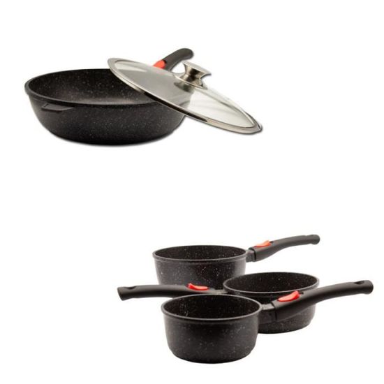 Tefal Ingenio Kamberg - Set 3 Casseroles 16-18-20 Cm - Fonte D'Aluminium - Revêtement Type Pierre - Tous Feux Casserole Tefal 3 casseroles et faitout 28 cm, Kamberg SERIE 3 CASSEROLES 16-18-20 CM + COUV. FONTE D'ALUMINIUM ® – FRANCE Compatible tous feux dont induction et four 250°C Max. Saveur Selects - Série Voyage - Set de casseroles - Sauteuse 25 cm - Casserole 20 cm - Acier... (four sans la poignée amovible) - GARANTIE A VIE* (*sauf la poignée amovible) / Découvrer toute la gamme sur le Kamberg Store en cliquant sur Visiter la boutique KAMBERG en dessous du titre du produit Diamètre 18-20 cm - Hauteur 9-10 cm - Volume 2,10-3,05 Litres - Poids 0,793-0,986 Kg - Livré avec 2 couvercles inox et 2 poignées amovibles Sans aucun revêtement - Cuisson 100% saine et authentique - Produit entièrement recyclable et durable - Garantie sans revêtement - Finition inox brossé - GARANTIE A VIE* (*sauf la poignée amovible) / Découvrer toute la gamme sur le Kamberg Store en cliquant sur Visiter la boutique KAMBERG en dessous du titre du produit