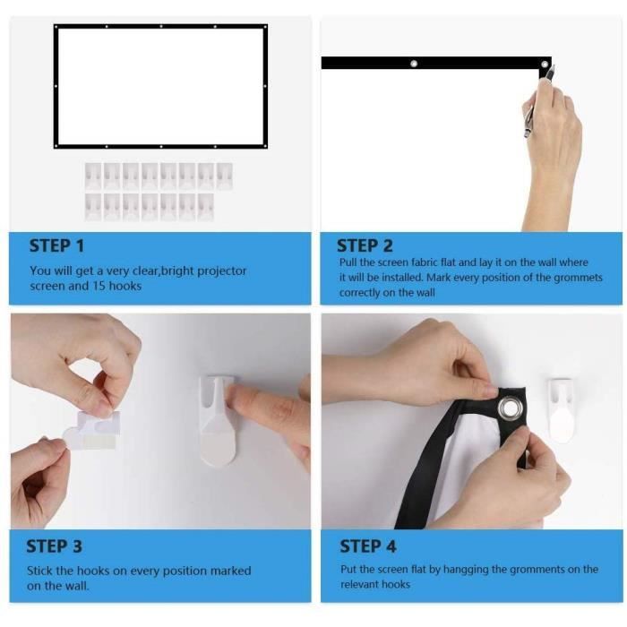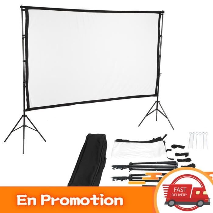 ECRAN DE PROJECTION 120'' 16: 9,avec Support,Pliable,Lavable,Durable Ce produit utilise un tissu en polyester avec une bonne élasticité comme écran de projection, ce qui peut garantir la douceur de l'écran après avoir été serré sur le cadre Tv 50 Pouces Écran De Projection 100 Pouces, 16: 9 Hd Pliable Anti-Froissement Écran Support Inclus Transport Facile Écran de Projection 100 Pouces 4K HD 16: 9 Ecran Projecteur Pliable Lavable Résistant Portable, Anti-Plis pour Vidéoprojecteurs, Projection Double Face pour Cinéma Maison/en Plein Air 【Pratique à transporter】 - L'écran du projecteur est fabriqué en aluminium léger mais robuste, le cadre de l'écran de cinéma portable peut être facilement transporté partout avec le sac de transport rembourré doux inclus et être bien protégé. 150 Pouces Écran Projection 16:9 Full HD 3D 4K Géant Pliable Écran de... 【Setup Configuration rapide】- L'écran du projecteur avec support est prêt pour une configuration rapide en quelques minutes. Cela facilite le voyage avec pour les voyages en famille, le camping ou la nuit de cinéma dans la cour ect. 【Large application】- Écran de projecteur avec support, parfait pour le home cinéma, les écoles, les bureaux, les mariages, l'église, l'éducation, la présentation de la salle de conférence, l'affichage public, le film en plein air; Peut également être utilisé pour les présentations PowerPoint et autres affichages. 【Matériaux de haute qualité】- Fabriqués avec un tissu en polyester naturel, l'écran de projection est transparent et une projection double face, un revêtement haute définition, qui sont une finition fine, une flexibilité des fibres, pas de gondolement ni de rides.