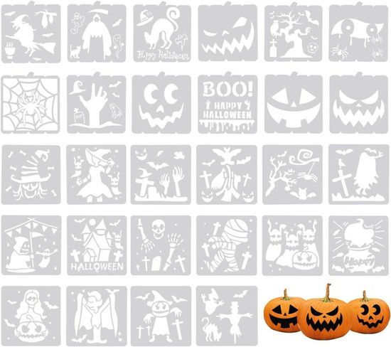 Un pochoir réutilisable et durable parfait pour les projets de bricolage et l'artisanat ! Set de 36 pochoirs de peinture pour le visage pour Halloween - Face Paint Shop Les utilisations courantes comprennent les décorations murales, les décorations de fenêtres, meubles, panneaux en bois, sacs en toile, housses d'oreillers et les vêtements. 16 Motifs Chauve-souris Fantôme 16 Pochoirs D'Halloween, Pochoirs D'Halloween Pour Peinture Sur Bois Pochoirs Halloween Chaque pochoir d'Halloween a une hauteur d'environ 8 pouces, la taille parfaite pour le dessin, la peinture, la pulvérisation, les cartes de vœux, les ornements d'artisanat d'Halloween, les fenêtres murales, les portes et les décorations de bricolage. Appliquez le pochoir d'Halloween sur de nombreuses surfaces telles que les murs, le tissu, le bois, la toile, les cartes de vœux et plus encore ! Lot de 8 pochoirs ronds en plastique réutilisables pour scrapbooking... Peignez votre propre enseigne, enrichissez votre vie et vos vacances. pour créer votre propre signe d'Halloween de manière flexible et facile. ocoosy Lot de 12 pochoirs d'Halloween de 20,3 c, grands pochoirs en... Facile à utiliser pour bricoler des ornements d'Halloween : Vous pouvez simplement le poser à plat et le fixer sur du papier, du bois, une porte, une fenêtre ou tout autre endroit que vous souhaitez bricoler, puis choisir un outil de peinture tel que de la peinture, un pistolet à peinture, des stylos à aquarelle, etc. Ne pas utiliser de nettoyants à base d'ammoniaque, car cela pourrait endommager le pochoir, et ne pas l'exposer à une chaleur excessive ou à une flamme., 2., les mesures sont prises manuellement, il peut y avoir de légères erreurs de taille., 3., les couleurs peuvent présenter de légères différences en fonction des écrans. Nombreuses applications : Ces mignons pochoirs d'Halloween peuvent être largement utilisés pour la décoration de la maison et les projets d'artisanat. Ce set de pochoirs d'Halloween comprend 16 pochoirs différents d'éléments d'Halloween tels que chauve-souris, toile d'araignée, fantôme, araignée, chat, crâne, chapeau de sorcière, citrouille, pochoir d'Halloween joyeux, etc. Il peut aider les enfants à développer leur intelligence, leur créativité et leur imagination.